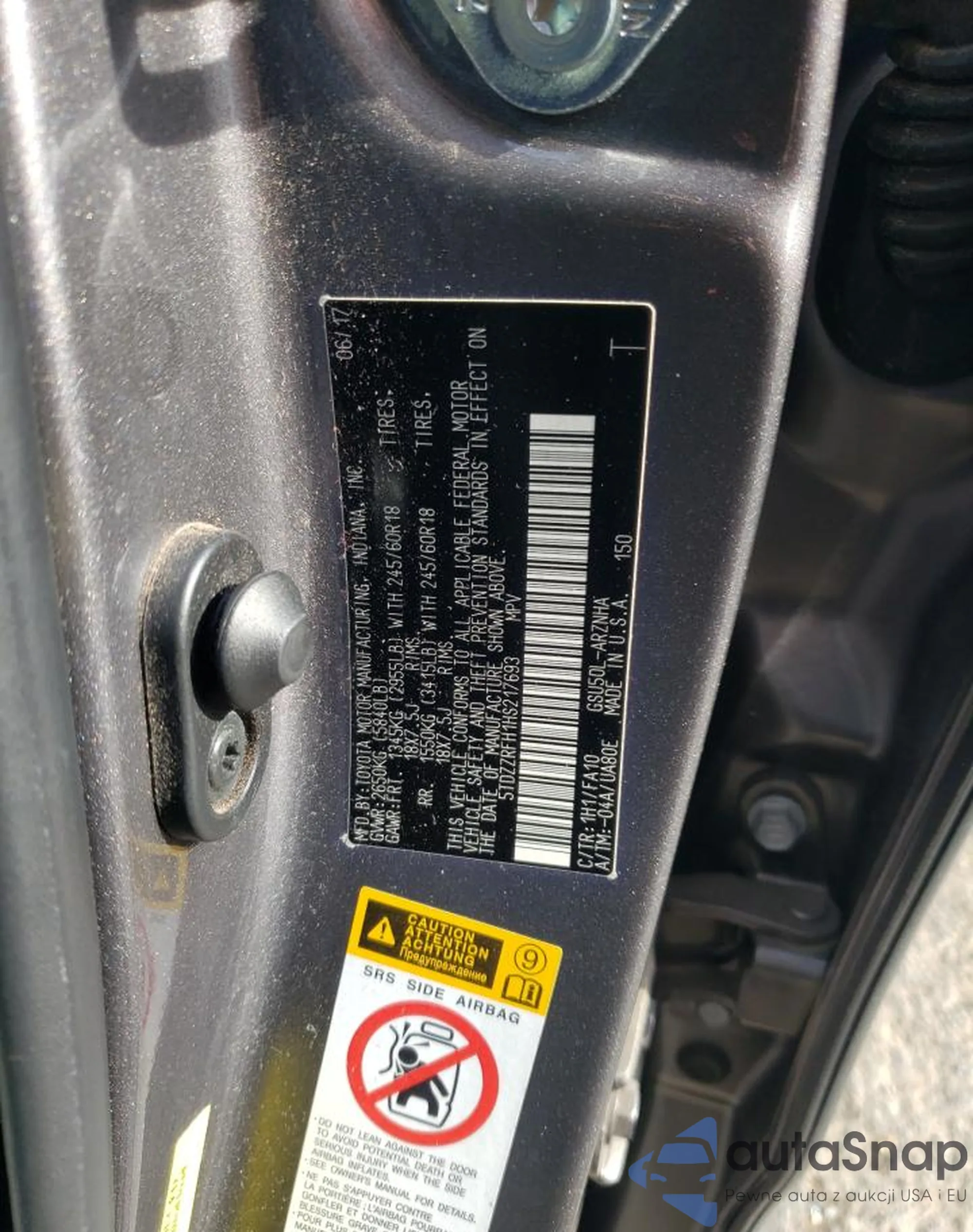VIN: 5TDZZRFH1HS217693