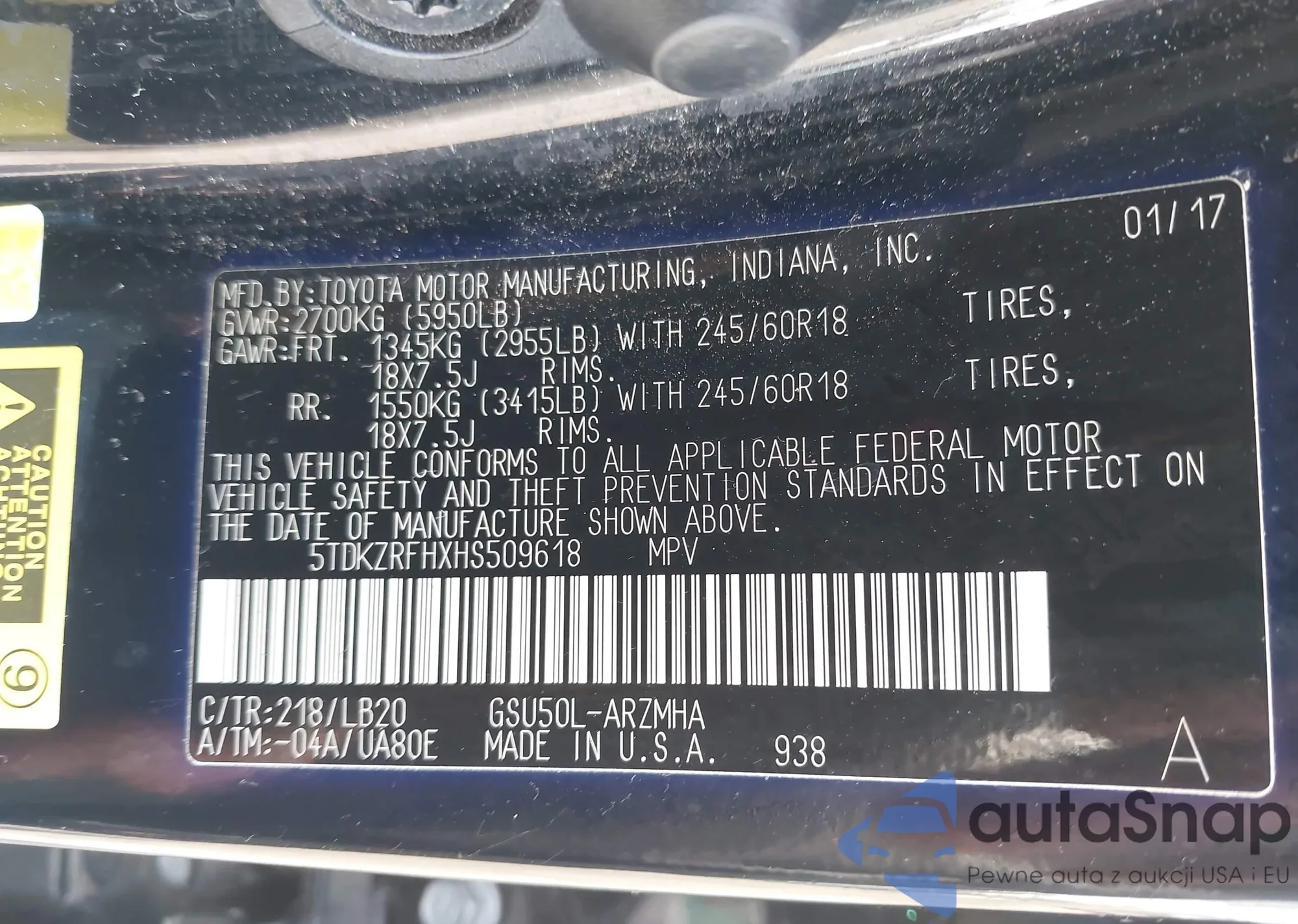 VIN: 5TDKZRFHXHS509618