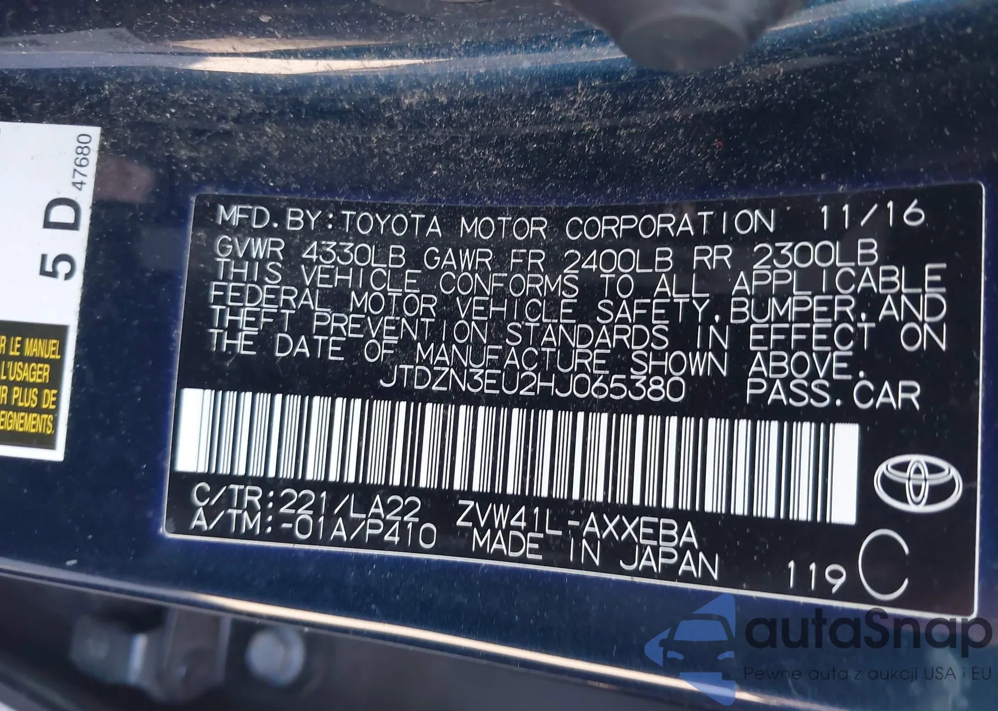 VIN: JTDZN3EU2HJ065380