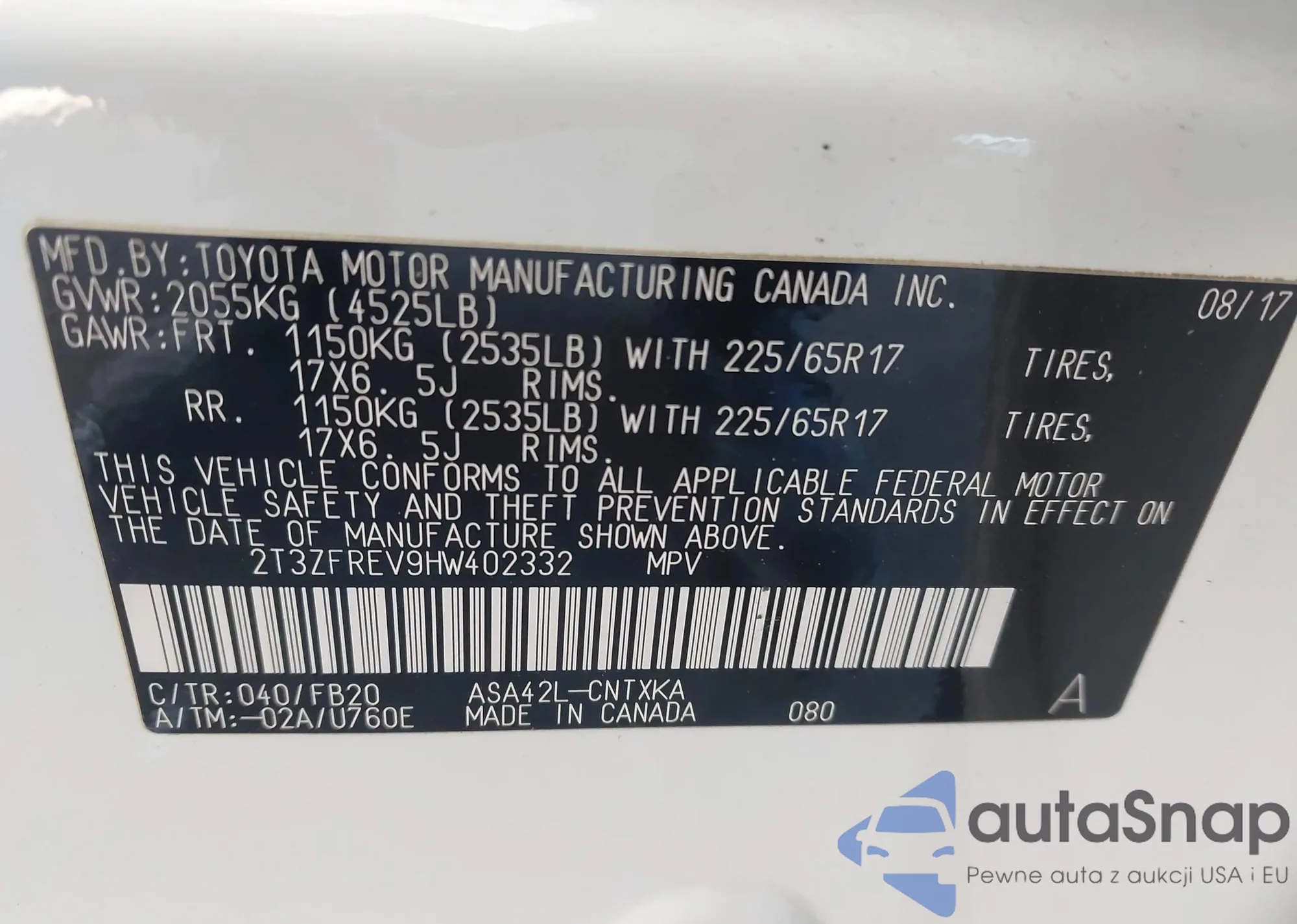 Автомобиль Toyota RAV 4 2017 (VIN 2T3ZFREV9HW402332) ранее не участвовал в торгах. Документы чистые, пробег соответствует или ниже среднего по рынку. Продаётся страховой компанией — рекомендуем покупку. Доставка в порт займет около 6–8 недель.