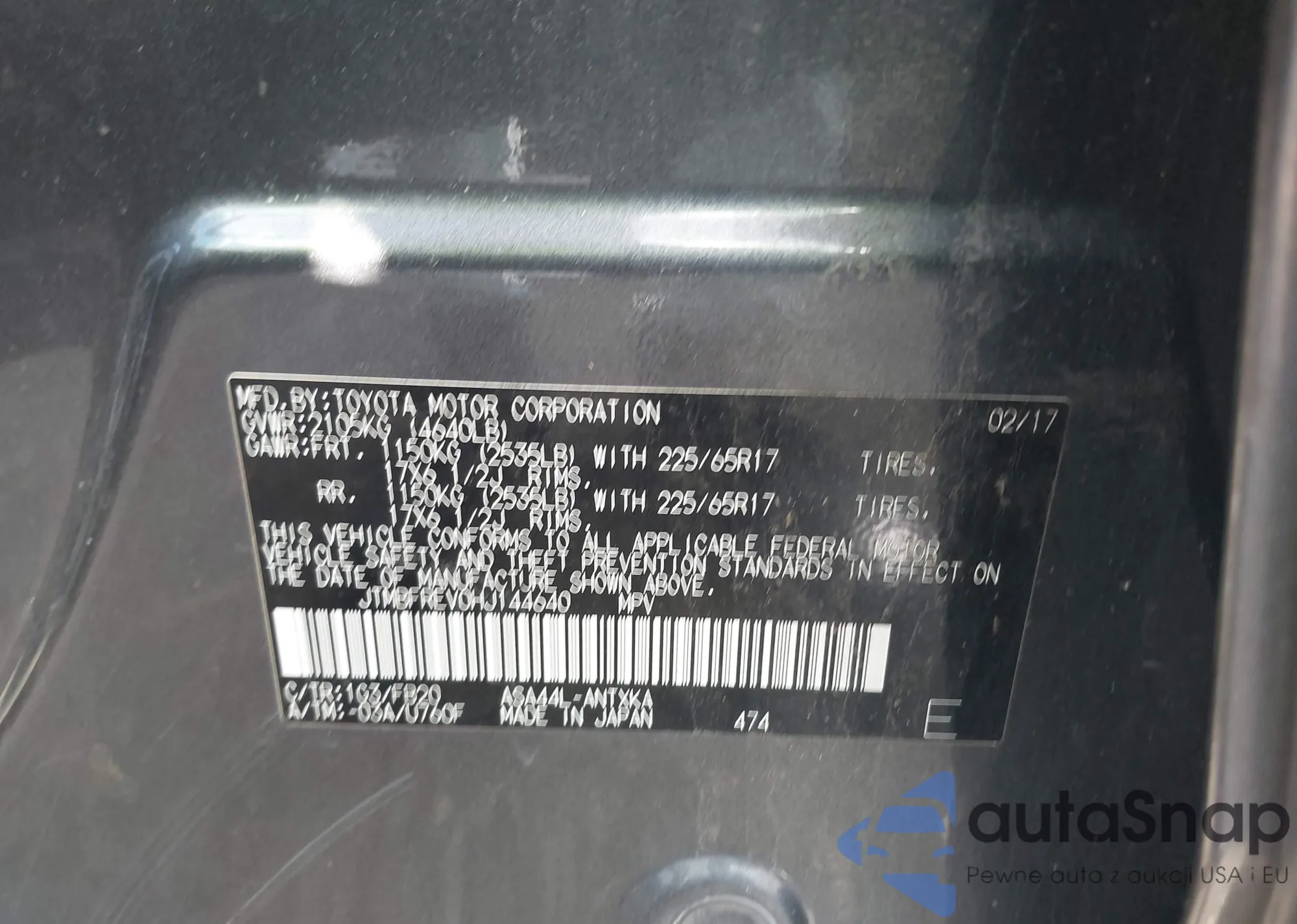 VIN: JTMBFREV0HJ144640