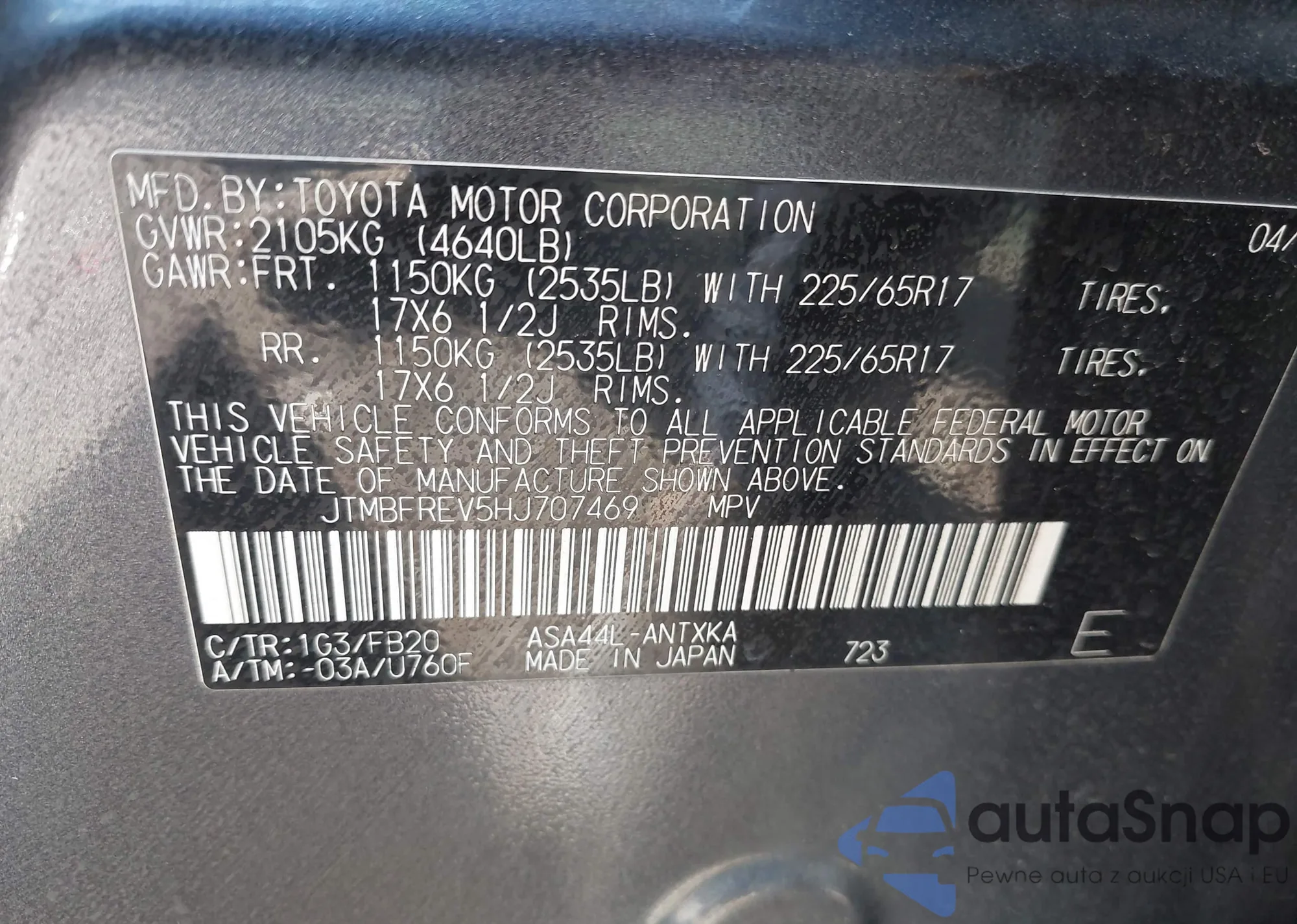 • VIN: JTMBFREV5HJ707469