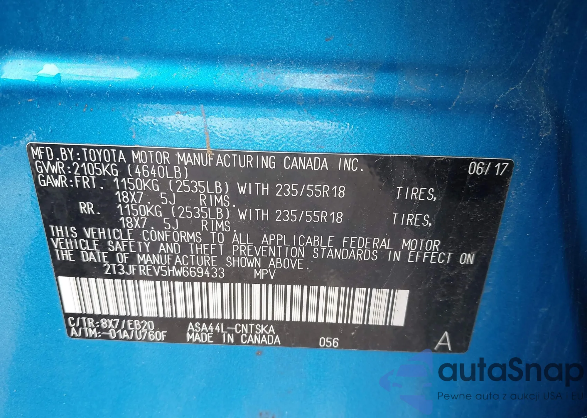 VIN: 2T3JFREV5HW669433