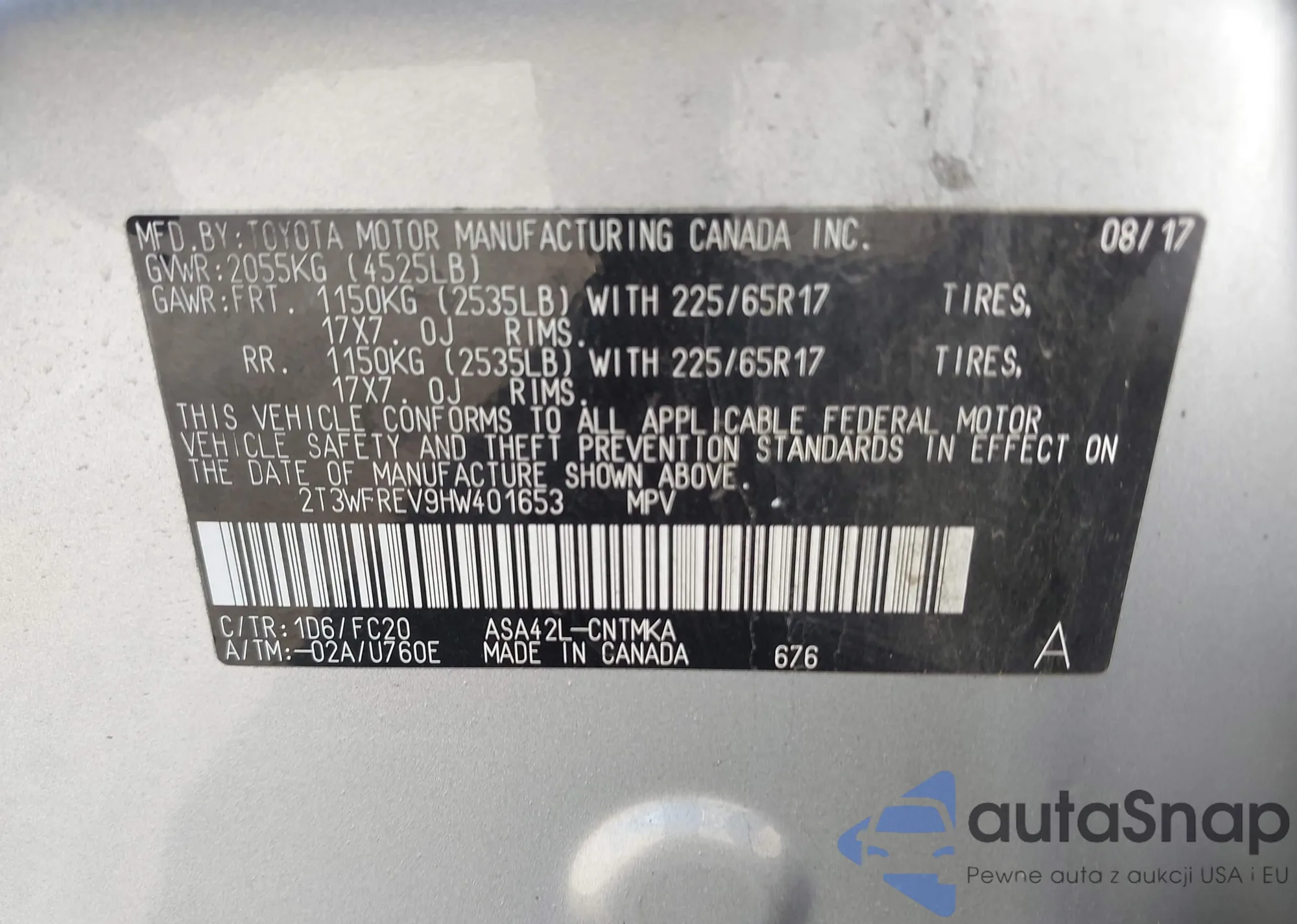VIN: 2T3WFREV9HW401653