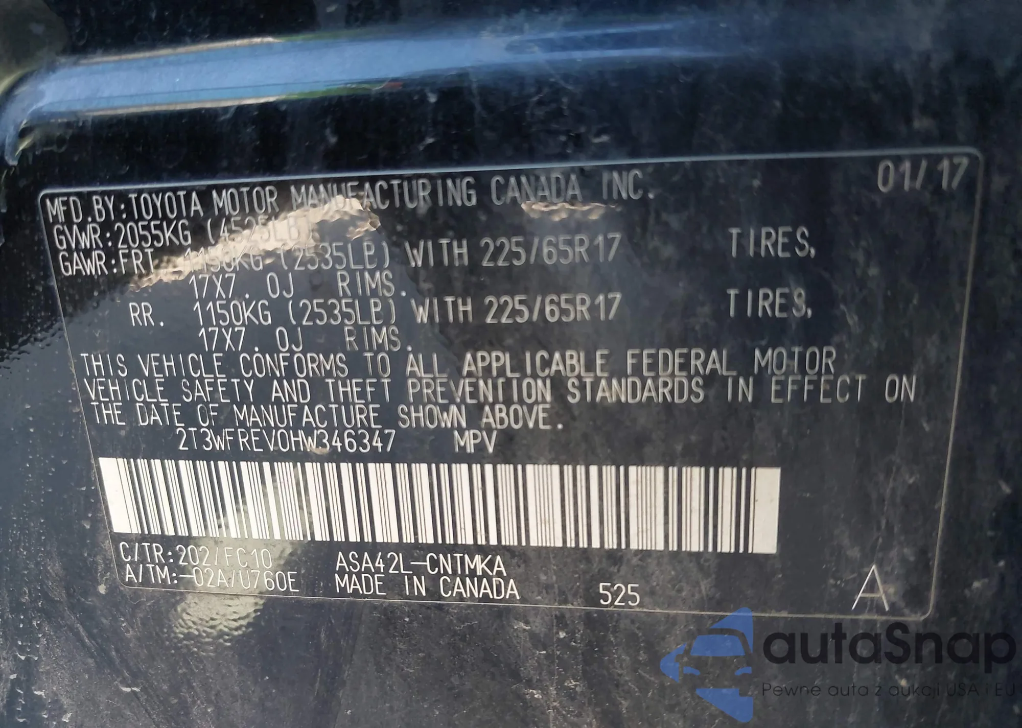 • VIN: 2T3WFREV0HW346347