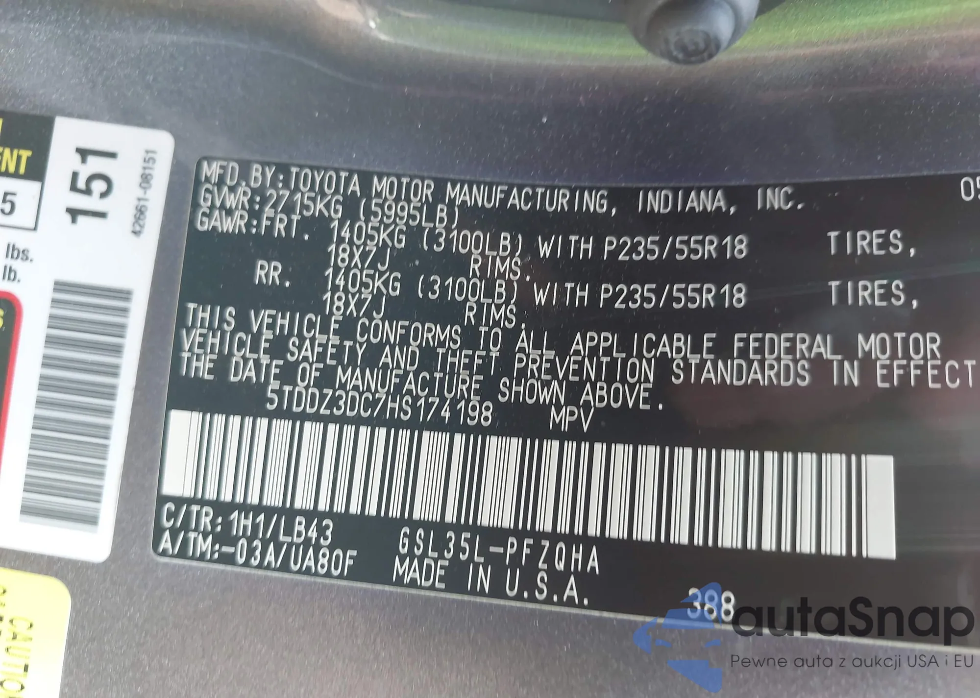 VIN: 5TDDZ3DC7HS174198
