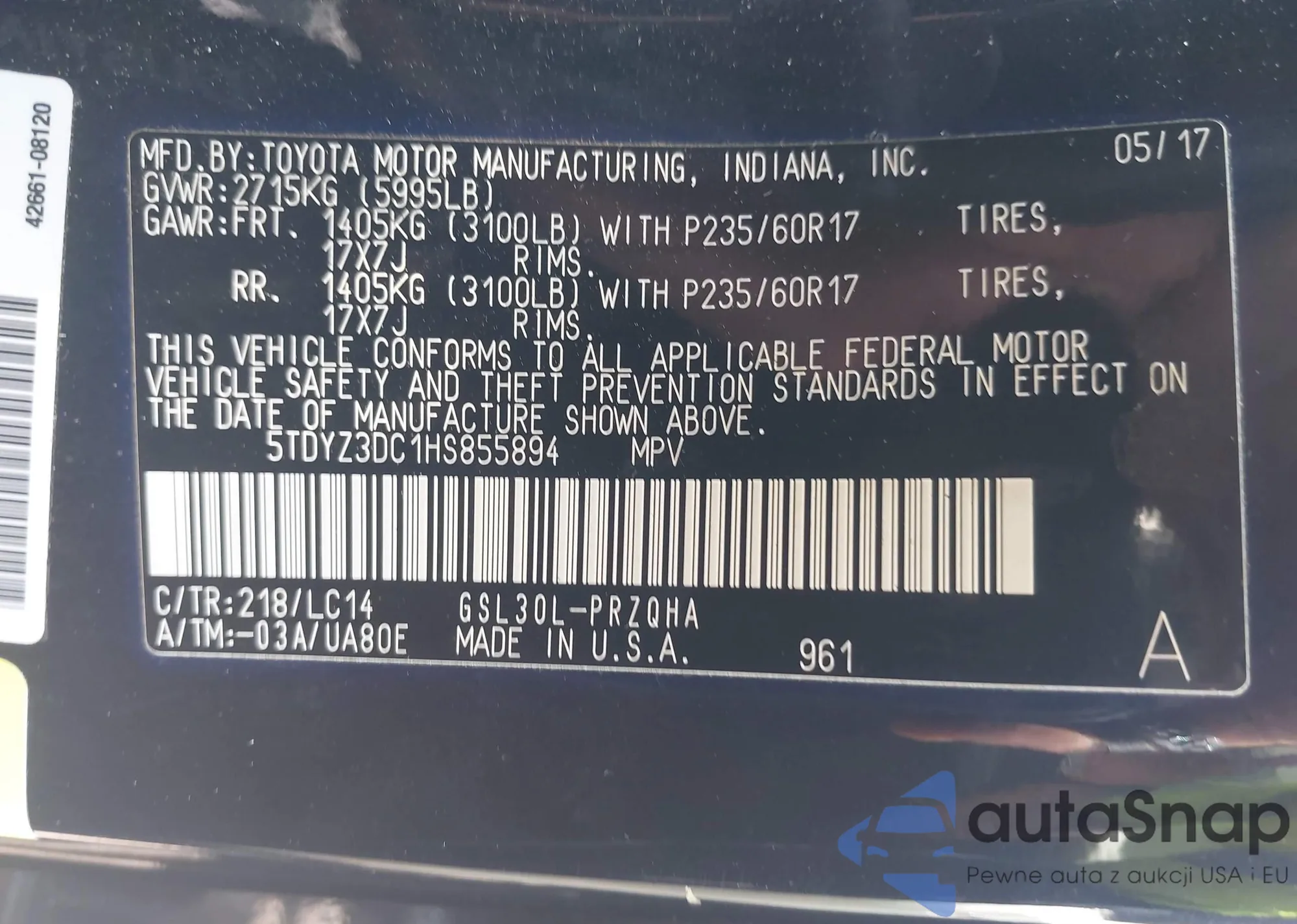VIN: 5TDYZ3DC1HS855894