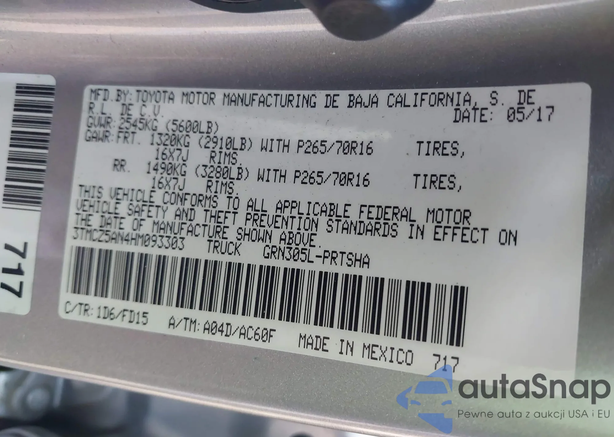 • VIN: 3TMCZ5AN4HM093303