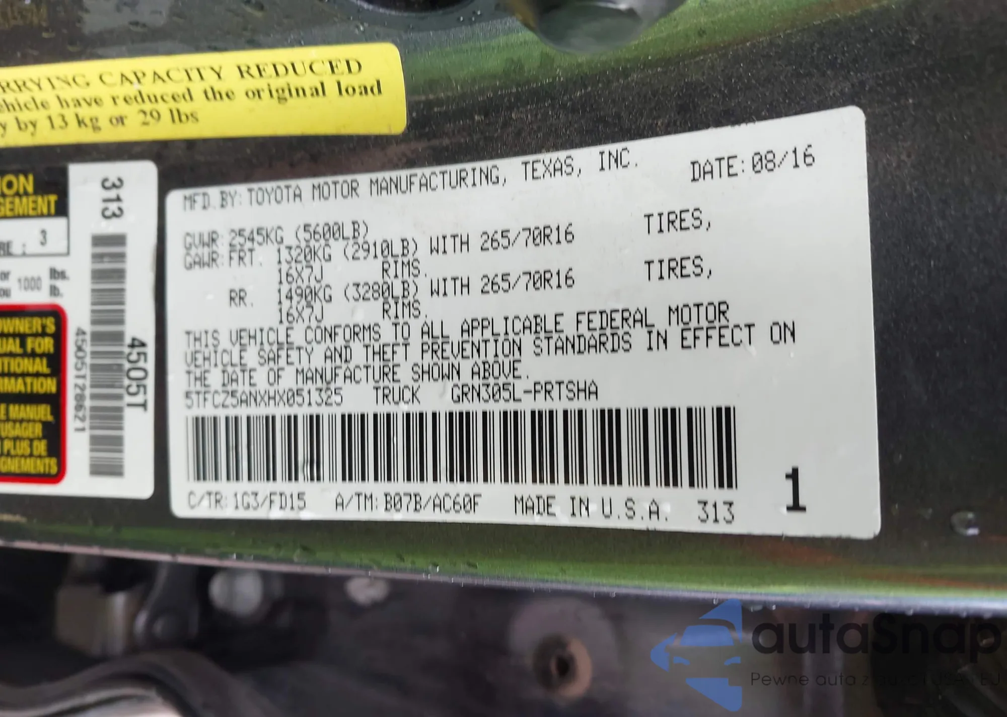 VIN: 5TFCZ5ANXHX051325