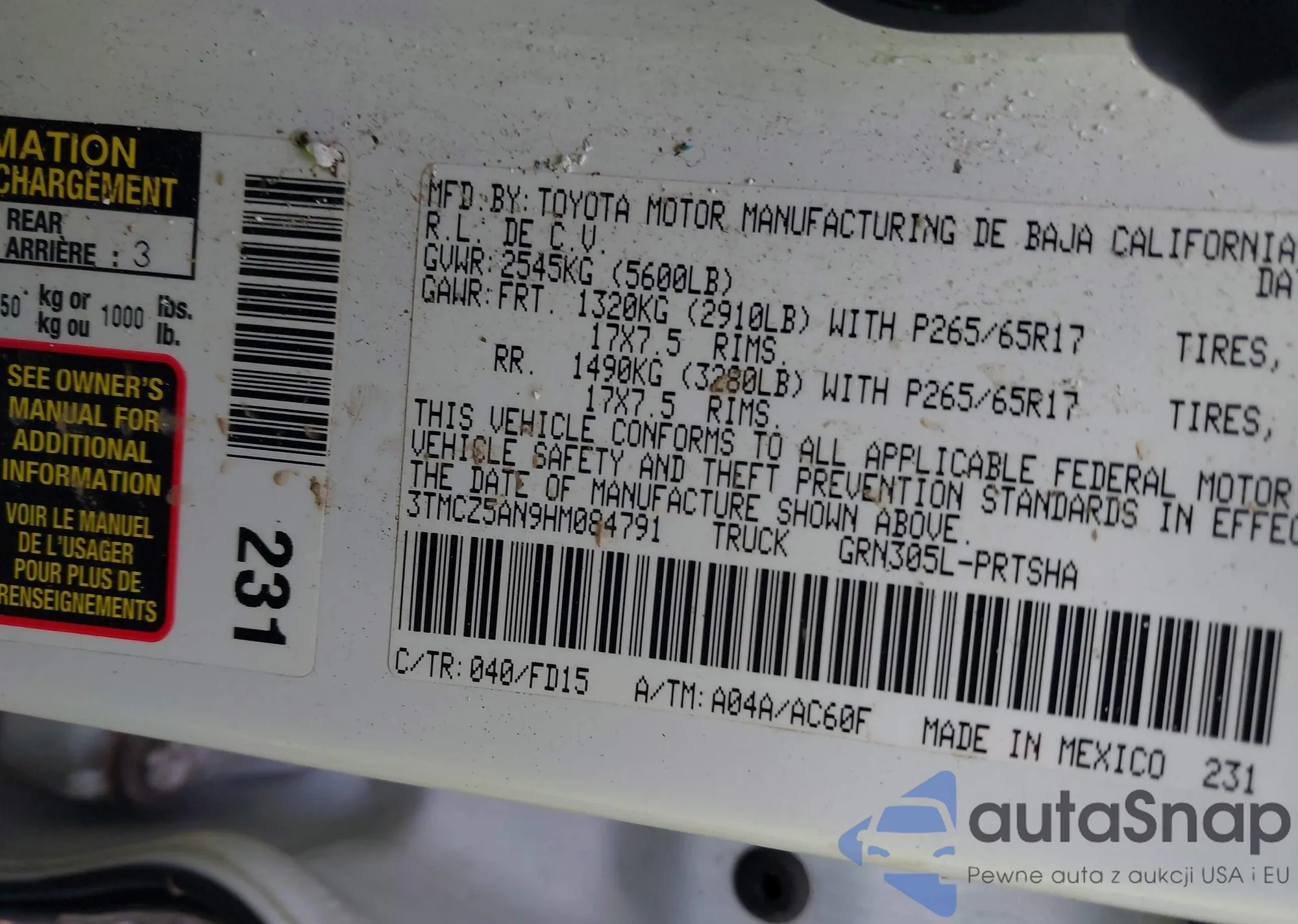 VIN: 3TMCZ5AN9HM084791