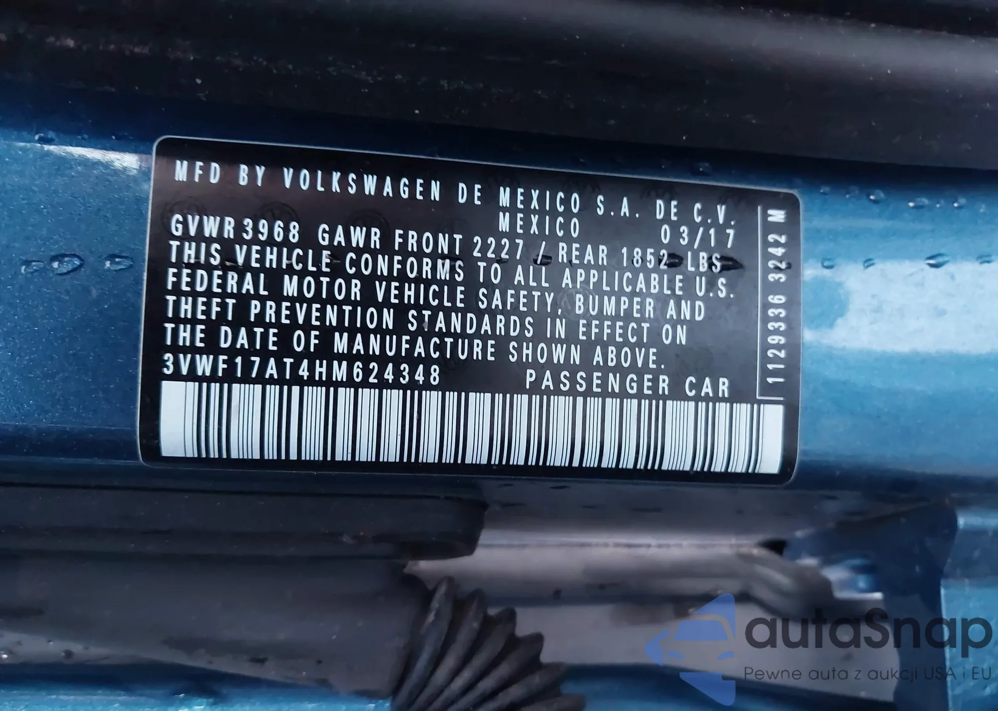 Автомобиль Volkswagen Beetle 2017 (VIN 3VWF17AT4HM624348) имеет документы, препятствующие регистрации. Могут возникнуть сложности при экспорте и регистрации. Обратитесь к экспертам AutaSnap для поиска альтернатив.