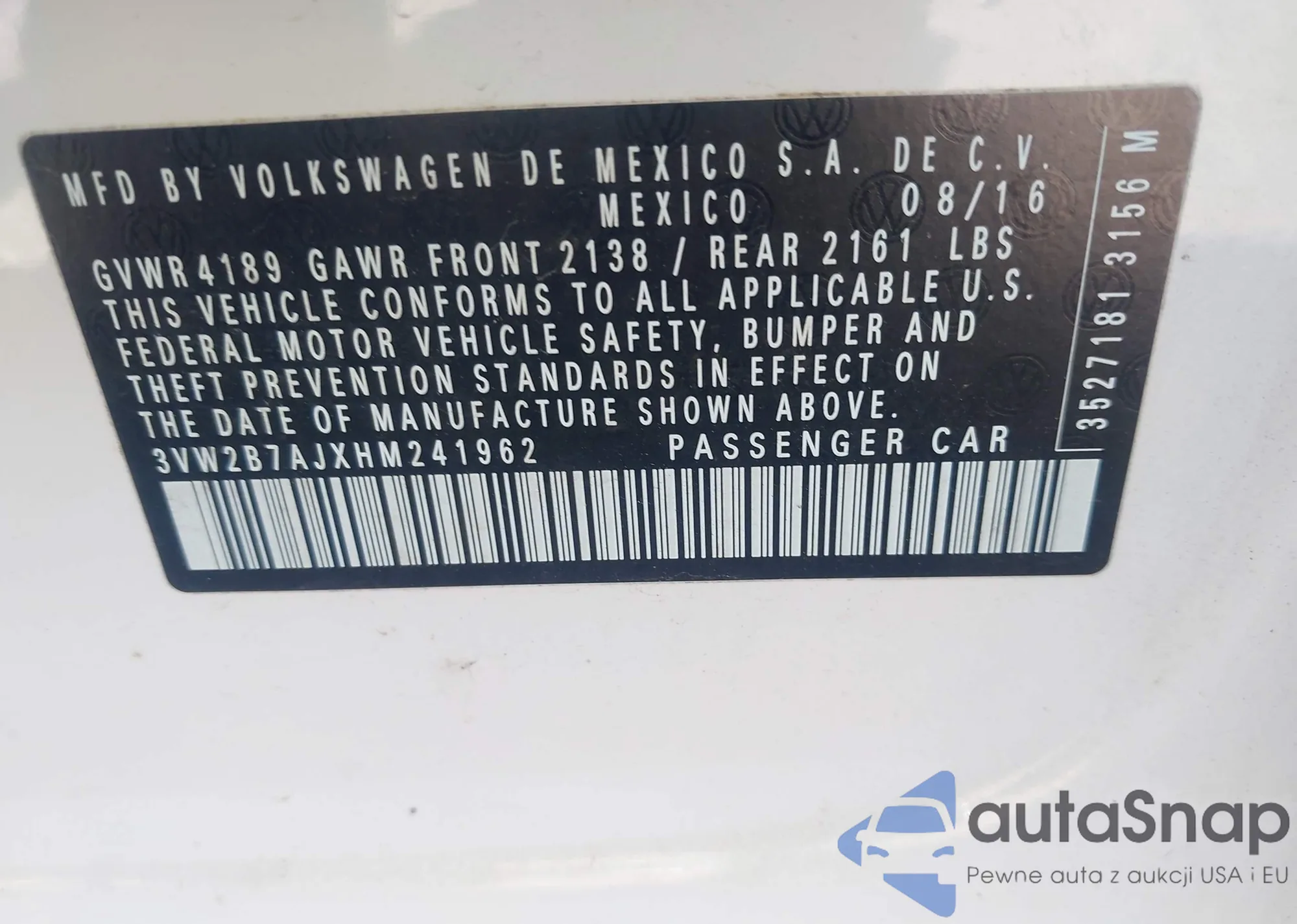 VIN: 3VW2B7AJXHM241962