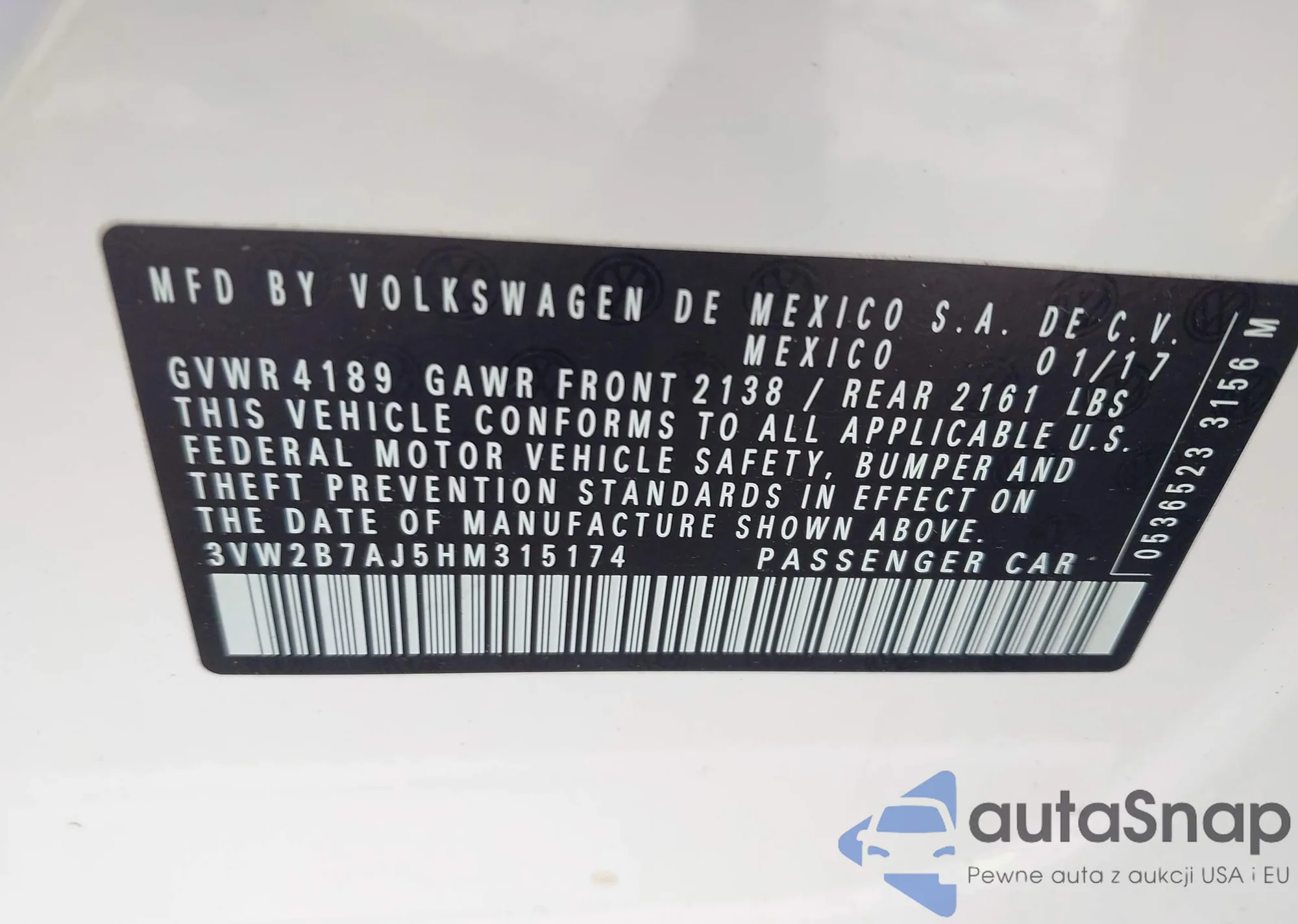 VIN: 3VW2B7AJ5HM315174