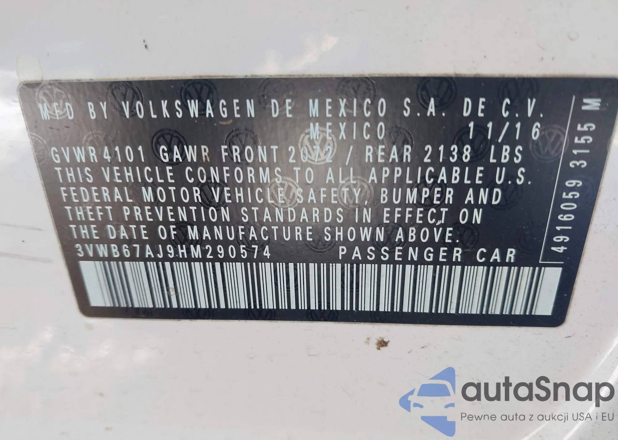 3VWB67AJ9HM290574 IAAI