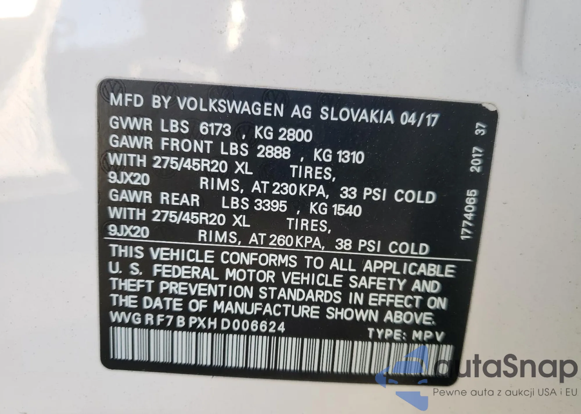 VIN: WVGRF7BPXHD006624