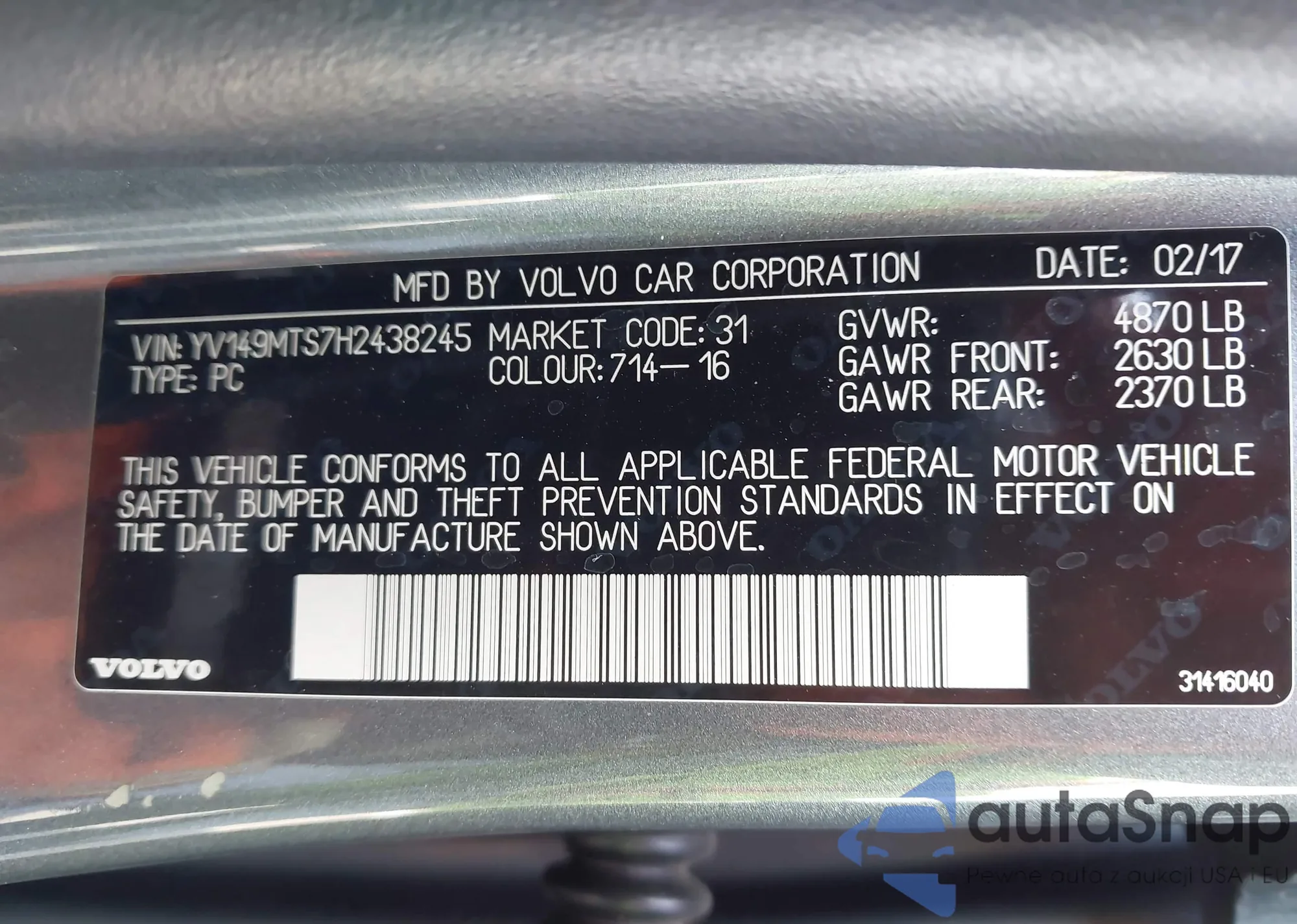 • VIN: YV149MTS7H2438245