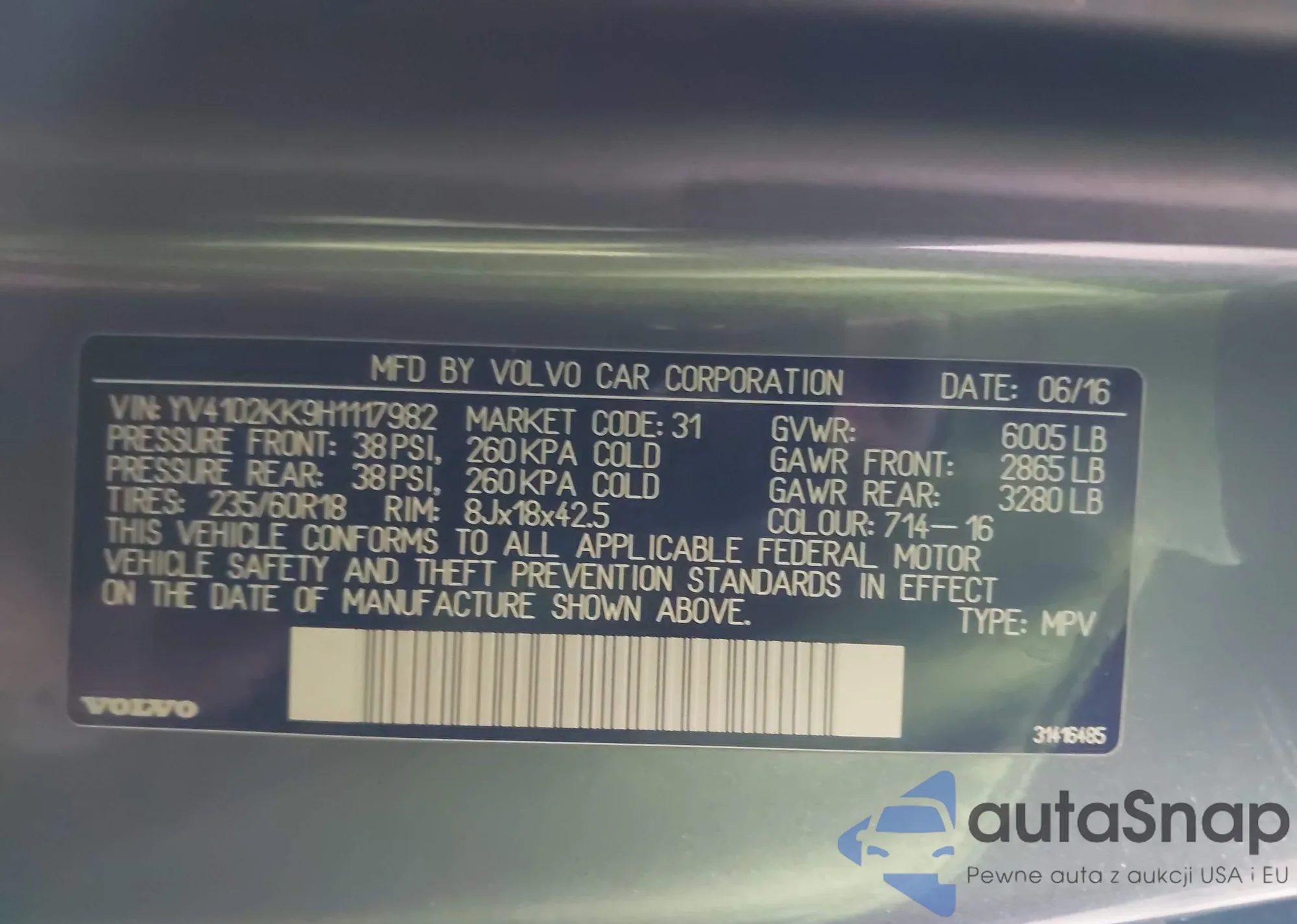 • VIN: YV4102KK9H1117982