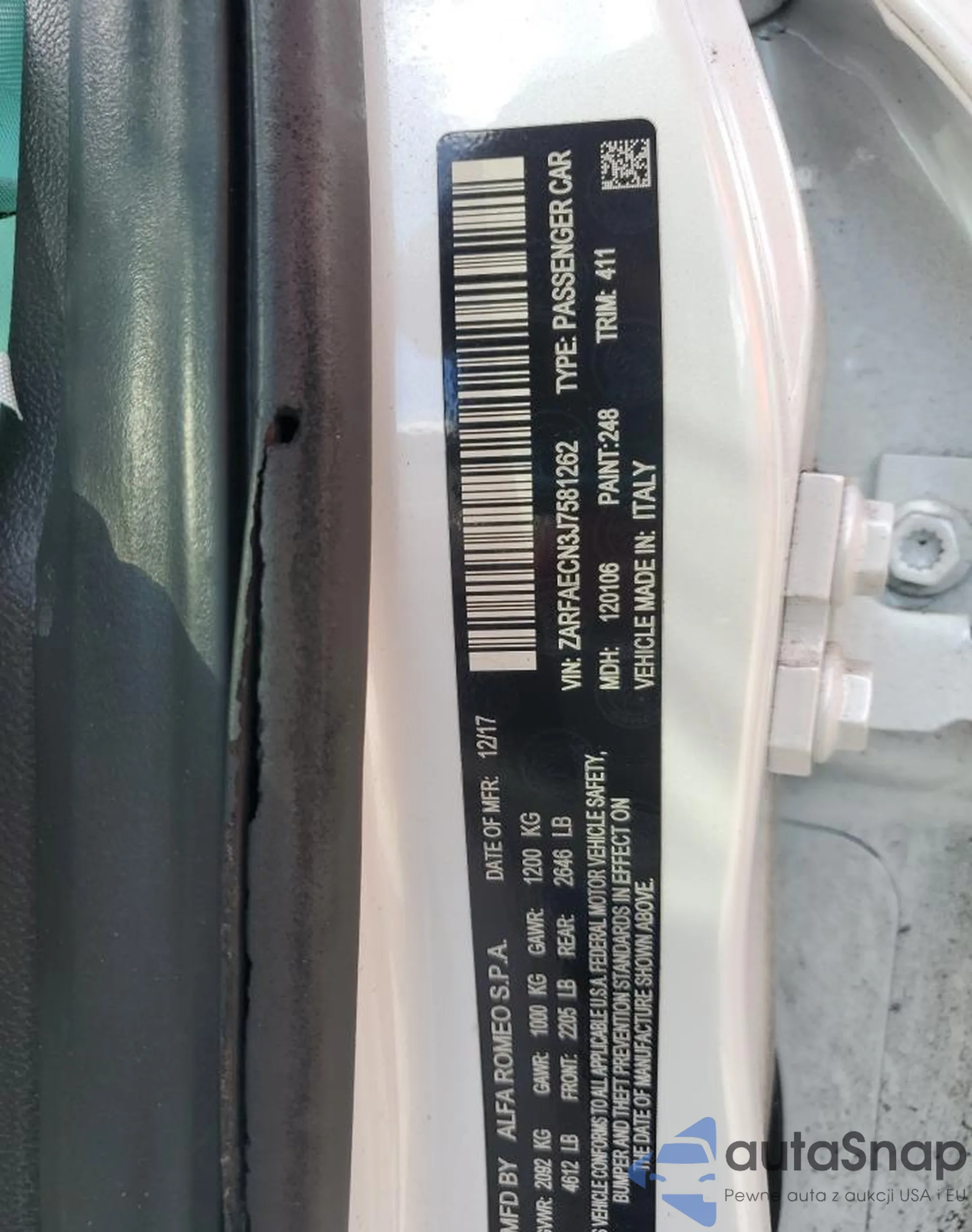 VIN: ZARFAECN3J7581262