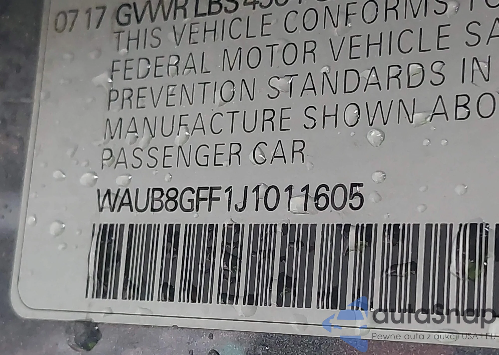 VIN: WAUB8GFF1J1011605