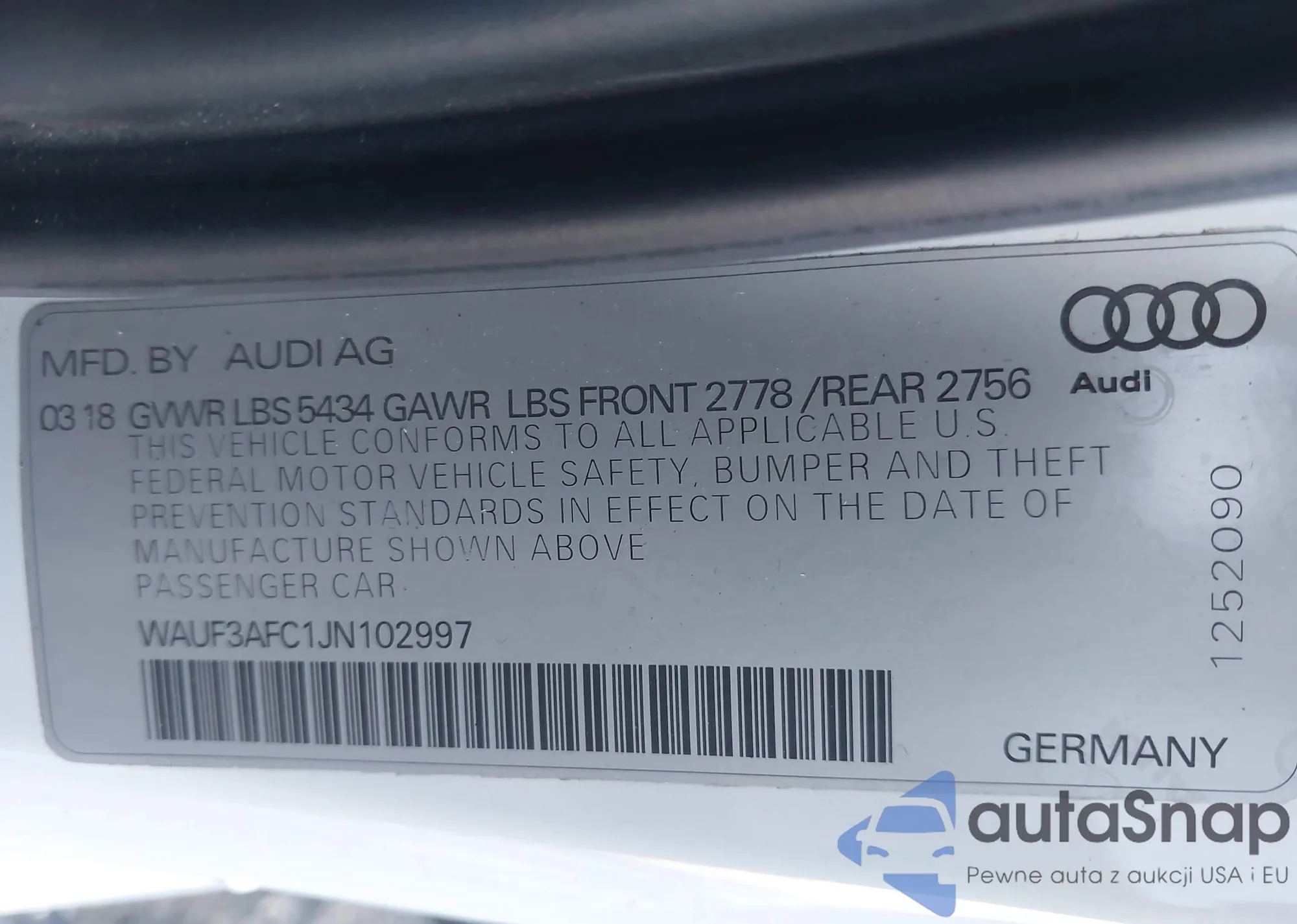 Автомобиль Audi A6 2018 (VIN WAUF3AFC1JN102997) ранее не участвовал в торгах. Документы чистые, пробег соответствует или ниже среднего по рынку. Продаётся страховой компанией — рекомендуем покупку. Доставка в порт займет около 6–8 недель.