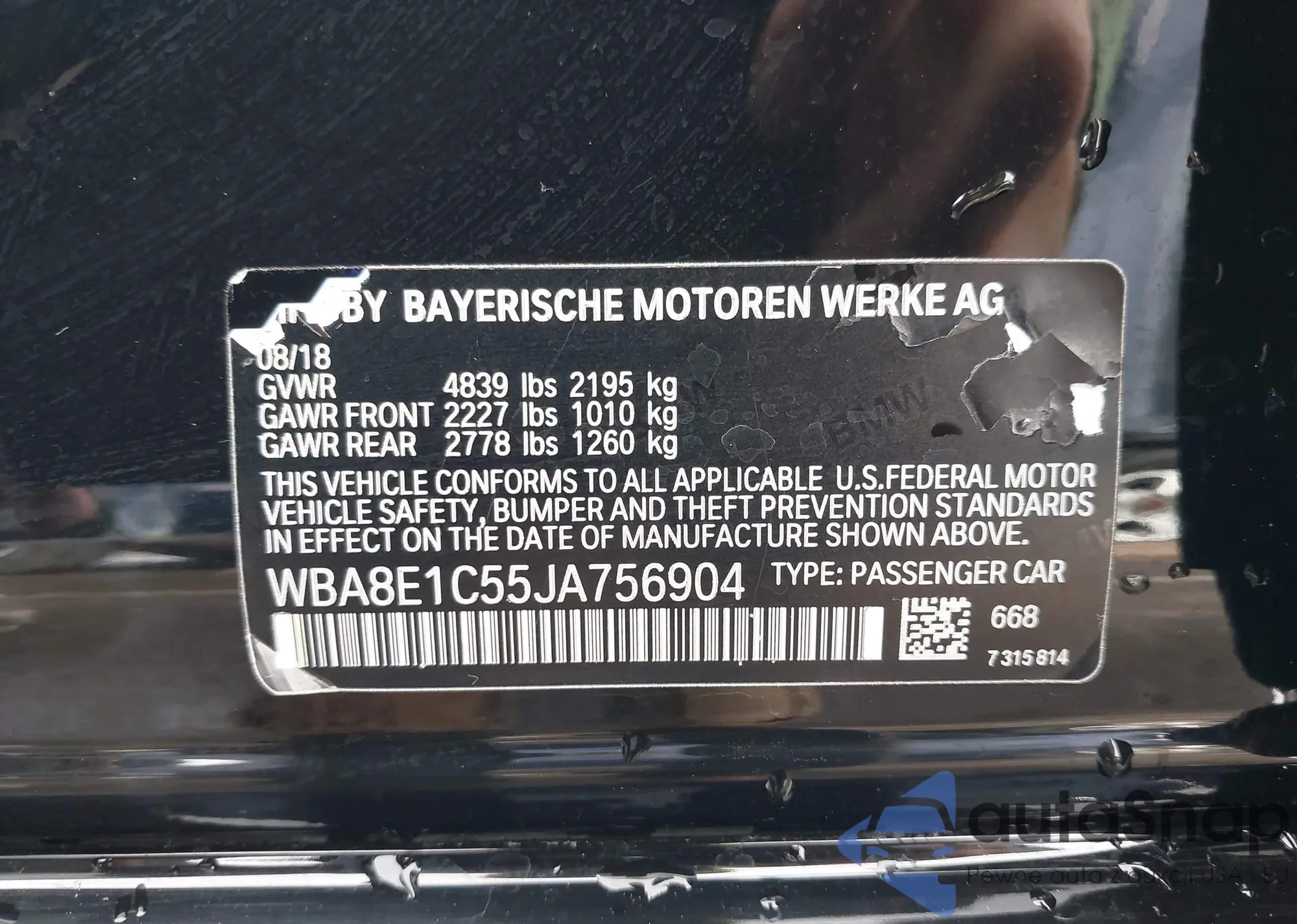 VIN: WBA8E1C55JA756904