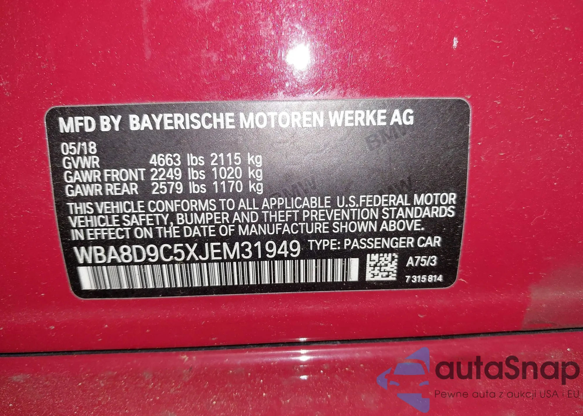 VIN: WBA8D9C5XJEM31949
