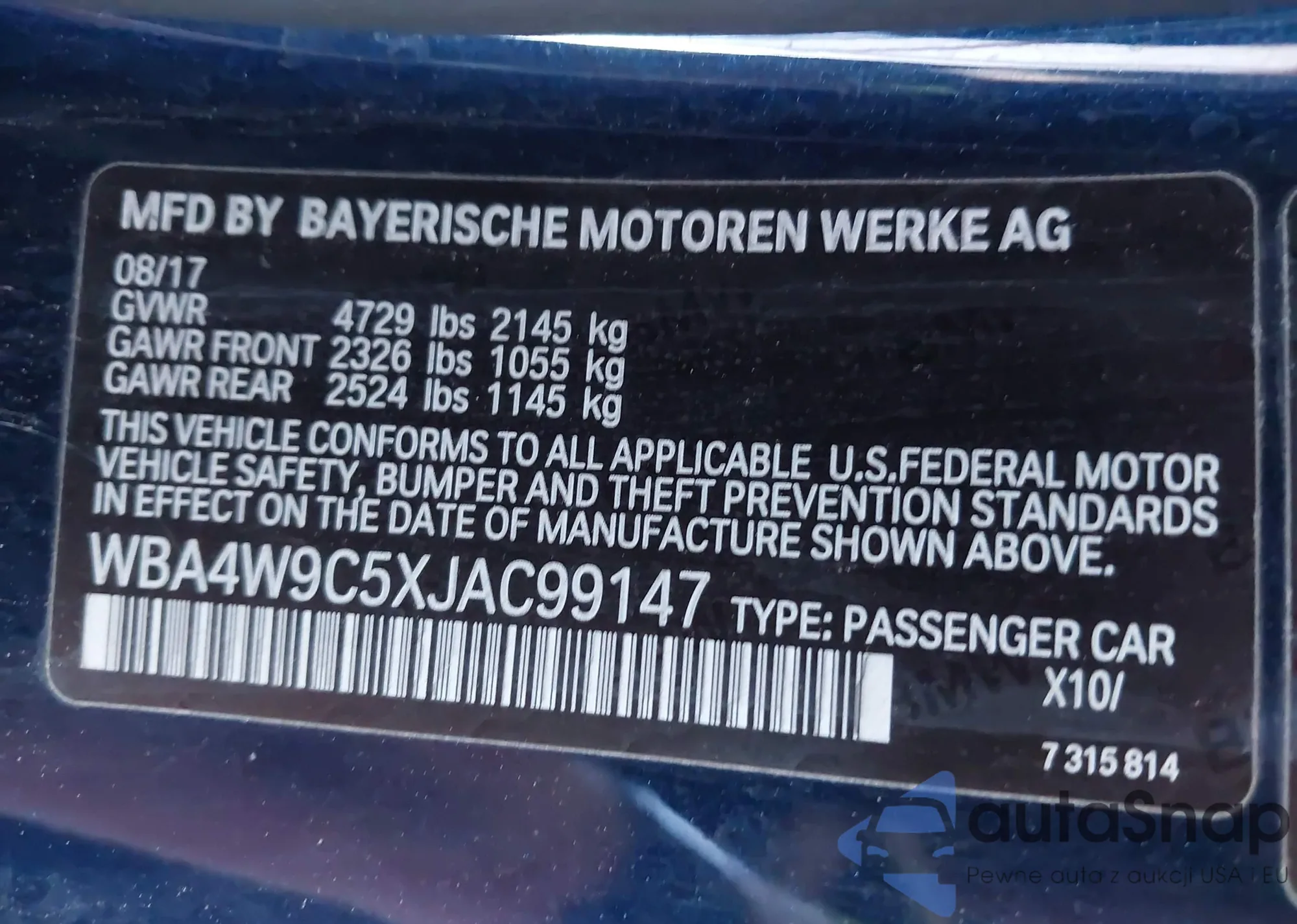 VIN: WBA4W9C5XJAC99147