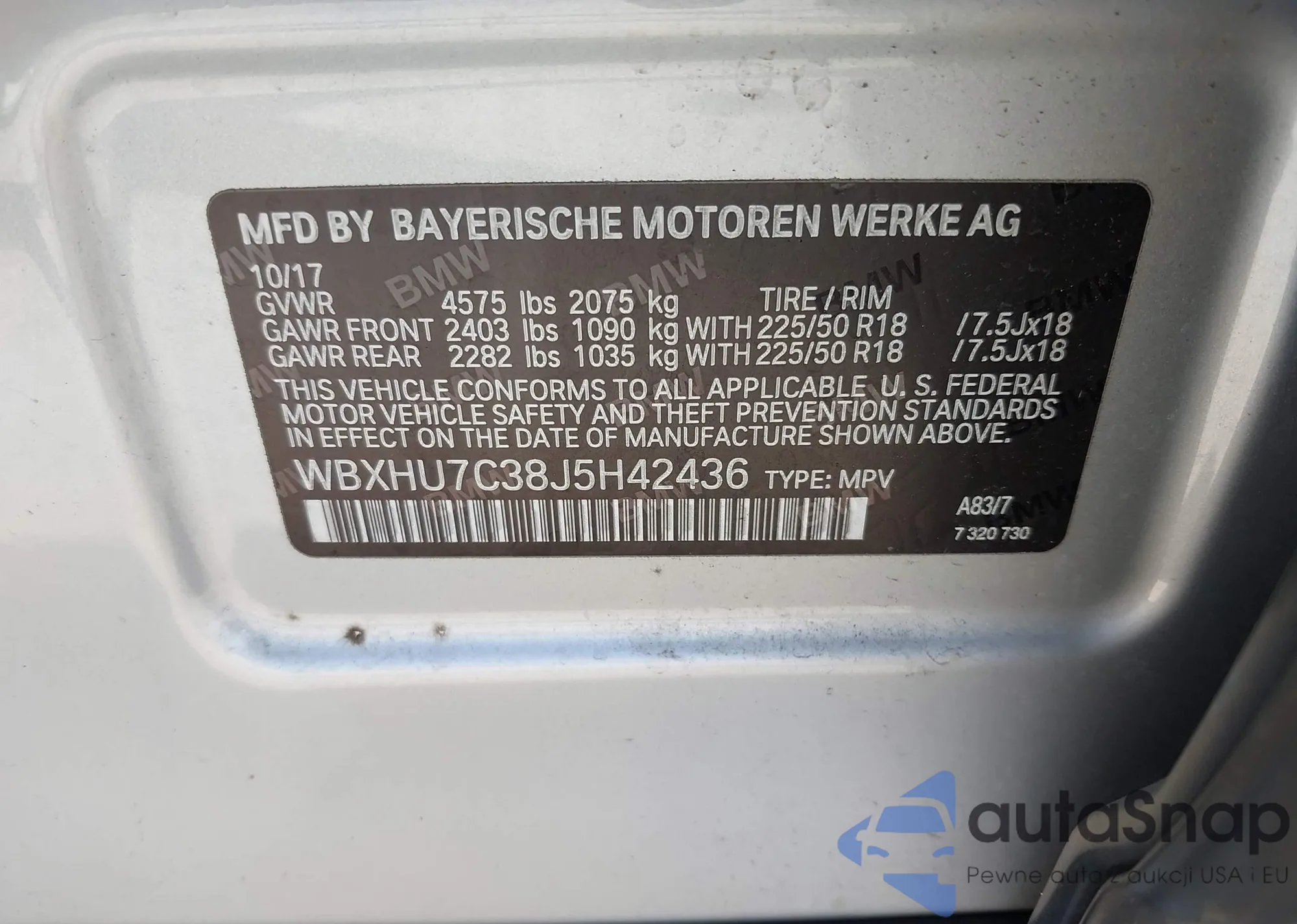 VIN: WBXHU7C38J5H42436