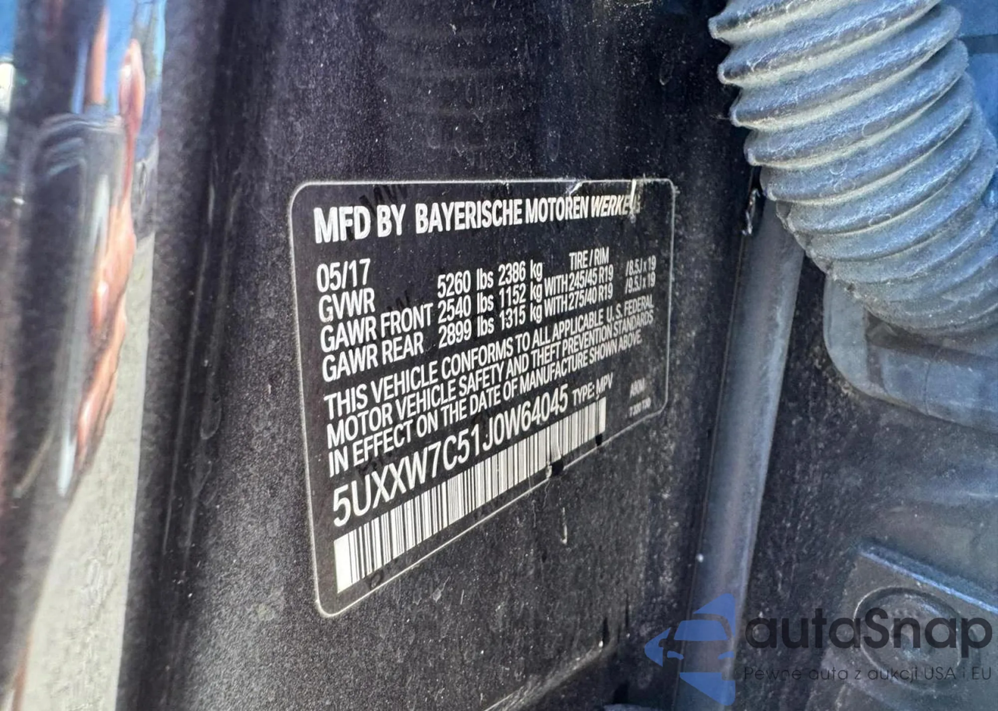 Автомобиль BMW X4 2018 (VIN 5UXXW7C51J0W64045) имеет документы, препятствующие регистрации. Могут возникнуть сложности при экспорте и регистрации. Обратитесь к экспертам AutaSnap для поиска альтернатив.