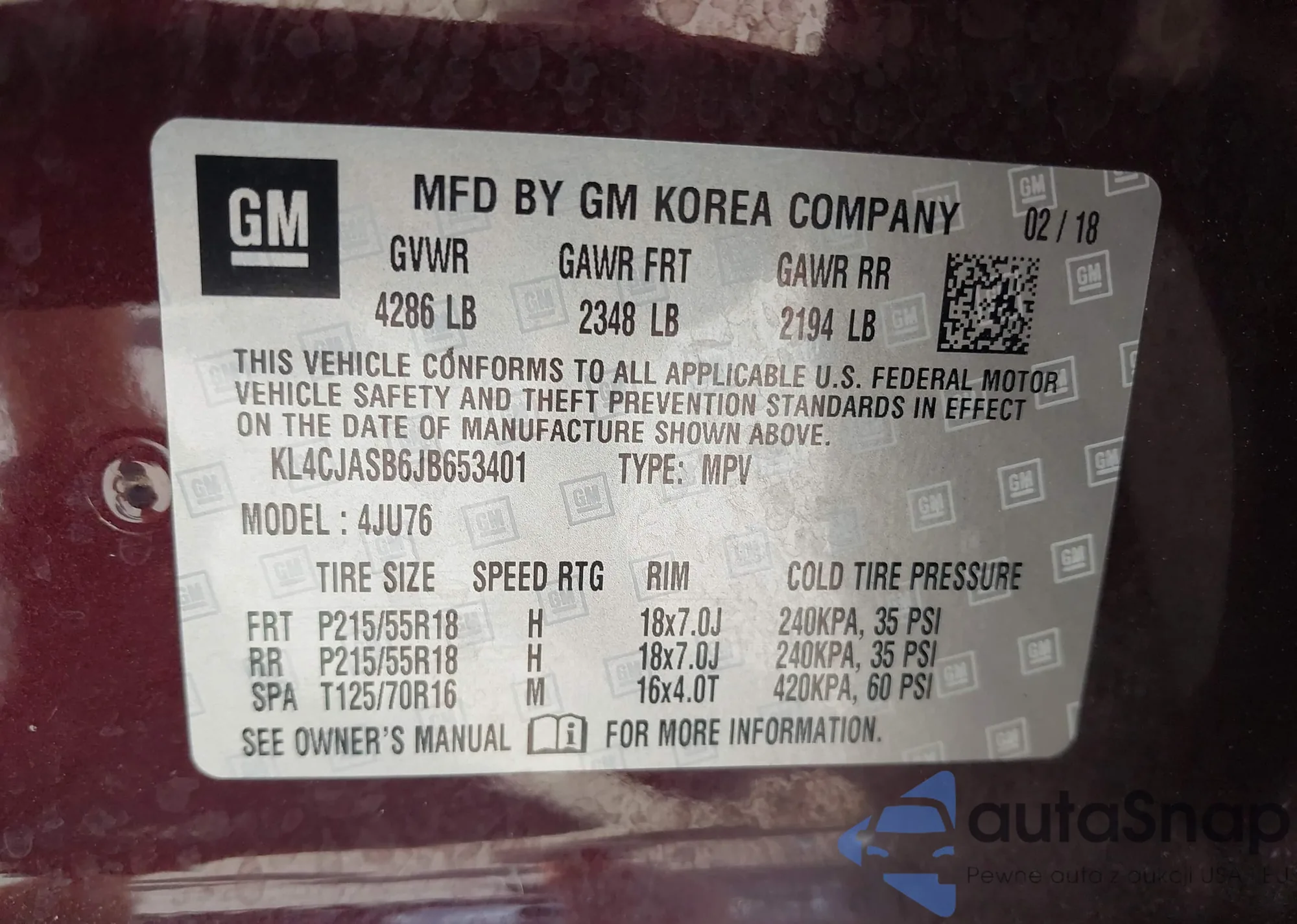 Автомобиль Buick Encore 2018 (VIN KL4CJASB6JB653401) ранее не участвовал в торгах. Документы чистые, пробег соответствует или ниже среднего по рынку. Продаётся страховой компанией — рекомендуем покупку. Доставка в порт займет около 6–8 недель.