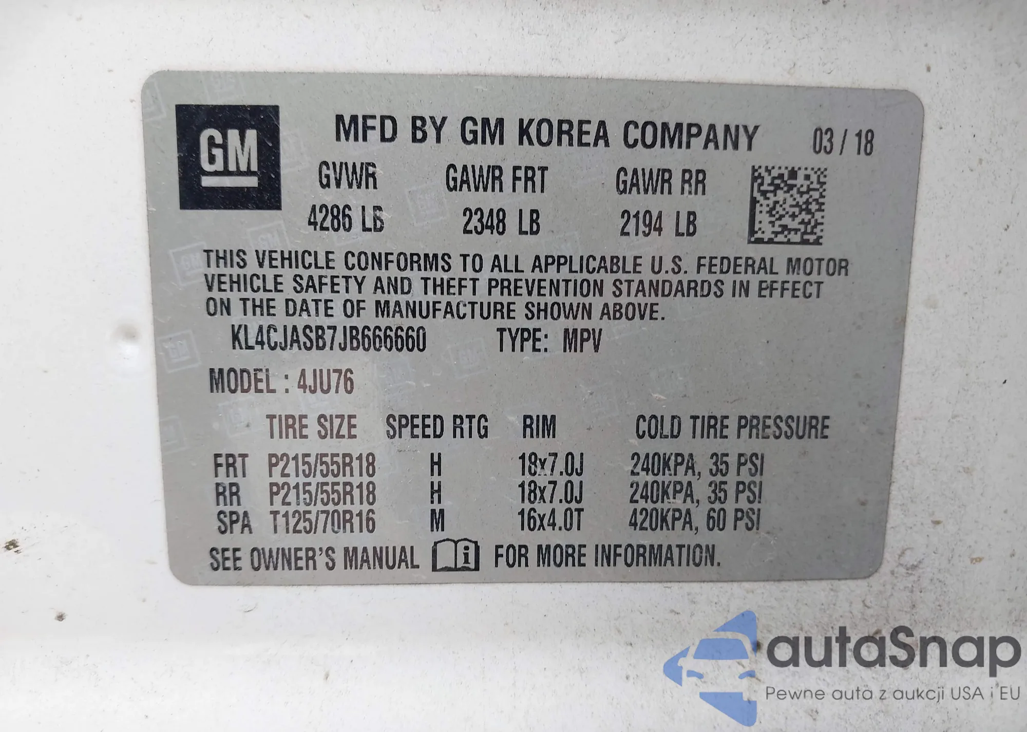 Автомобиль Buick Encore 2018 (VIN KL4CJASB7JB666660) ранее не участвовал в торгах. Документы чистые, пробег соответствует или ниже среднего по рынку. Продаётся страховой компанией — рекомендуем покупку. Доставка в порт займет около 6–8 недель.
