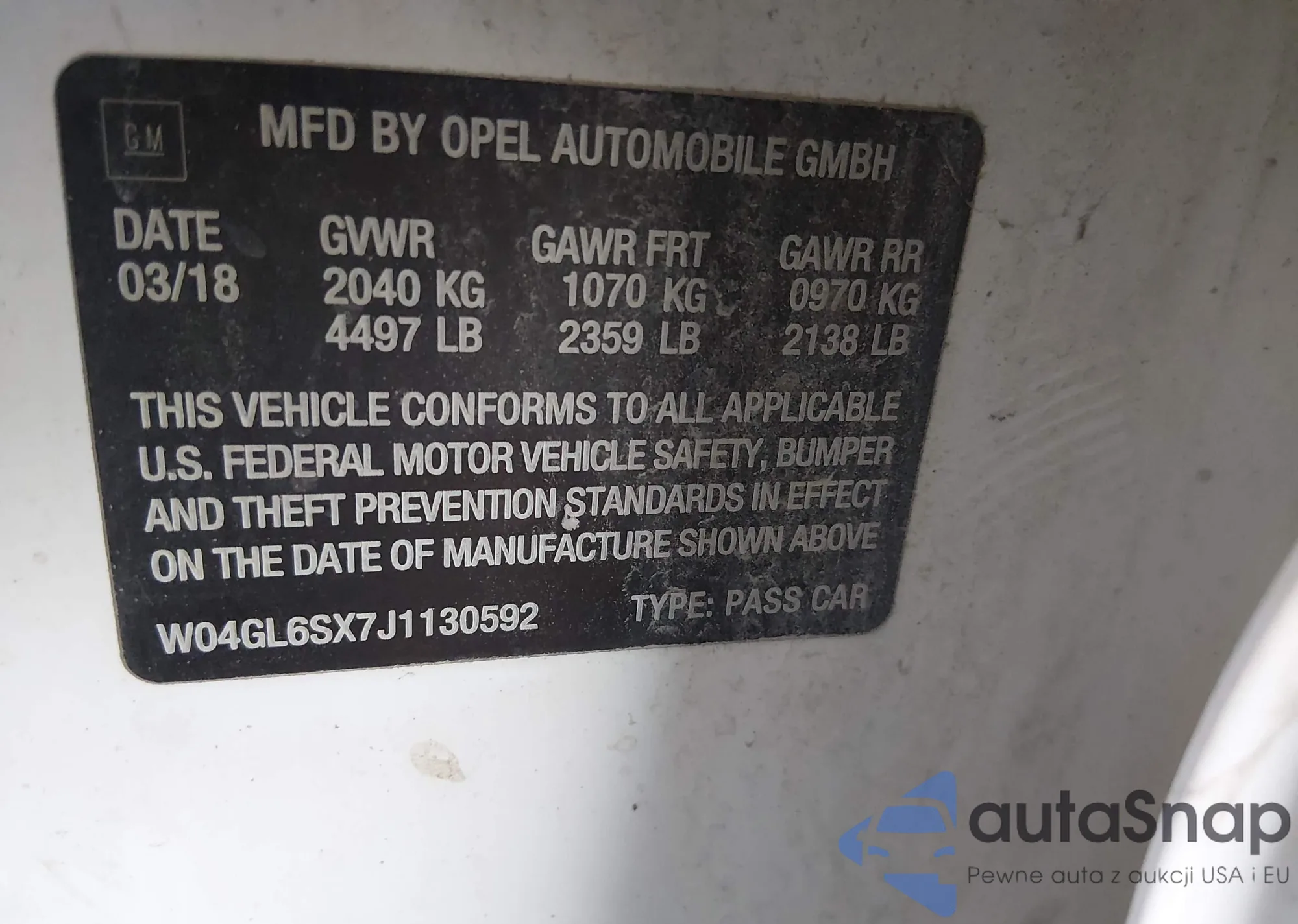 • VIN: W04GL6SX7J1130592