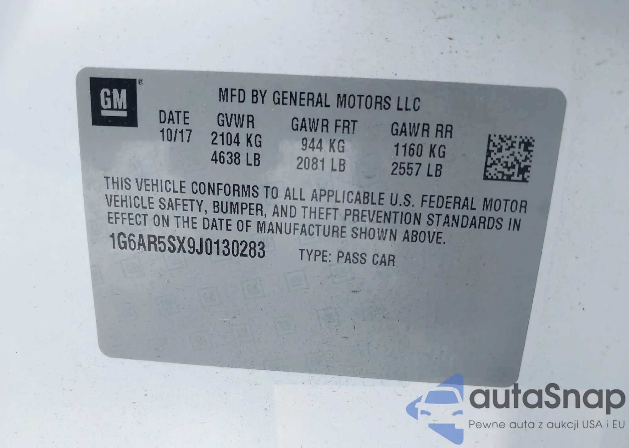 • VIN: 1G6AR5SX9J0130283