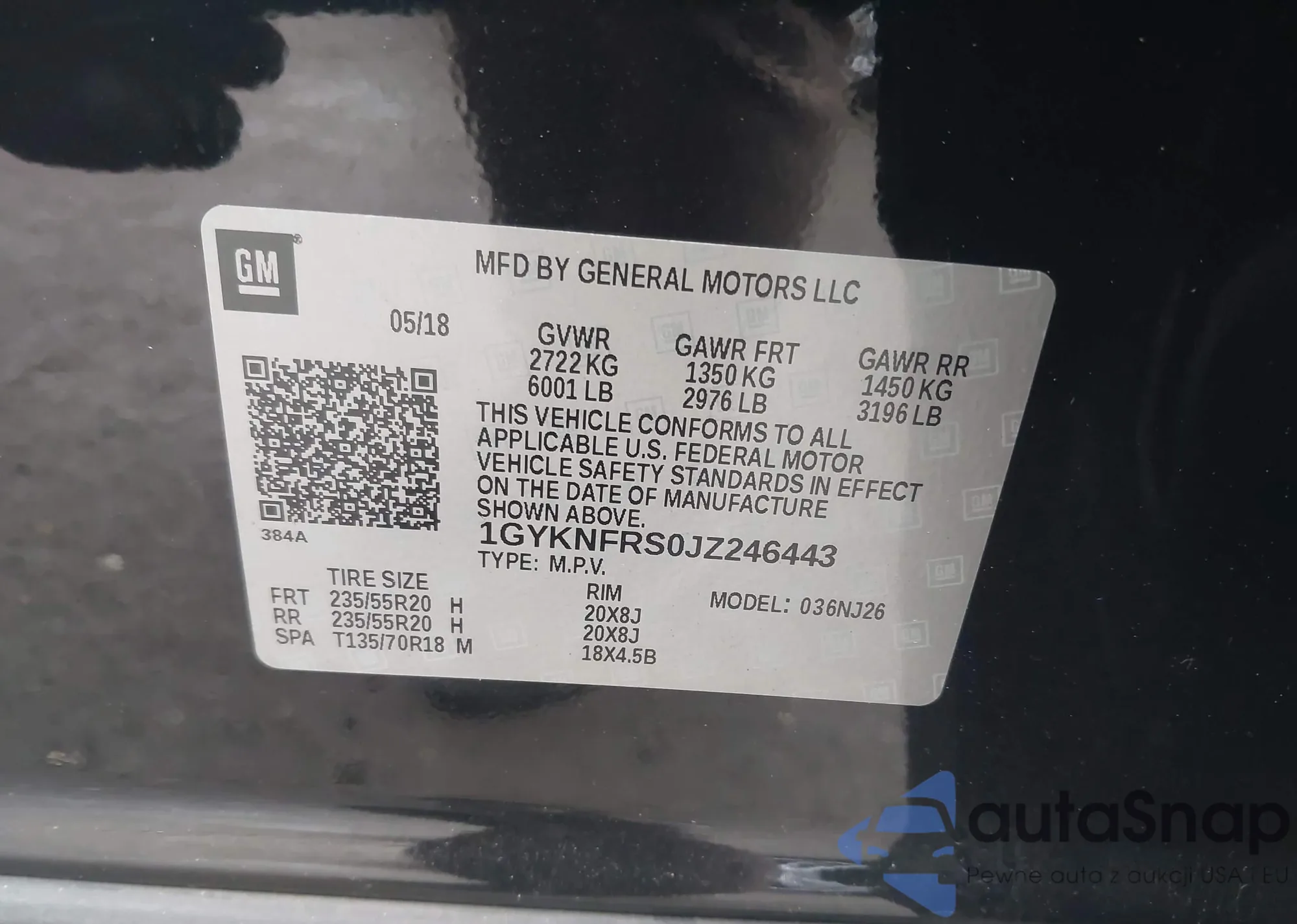 VIN: 1GYKNFRS0JZ246443