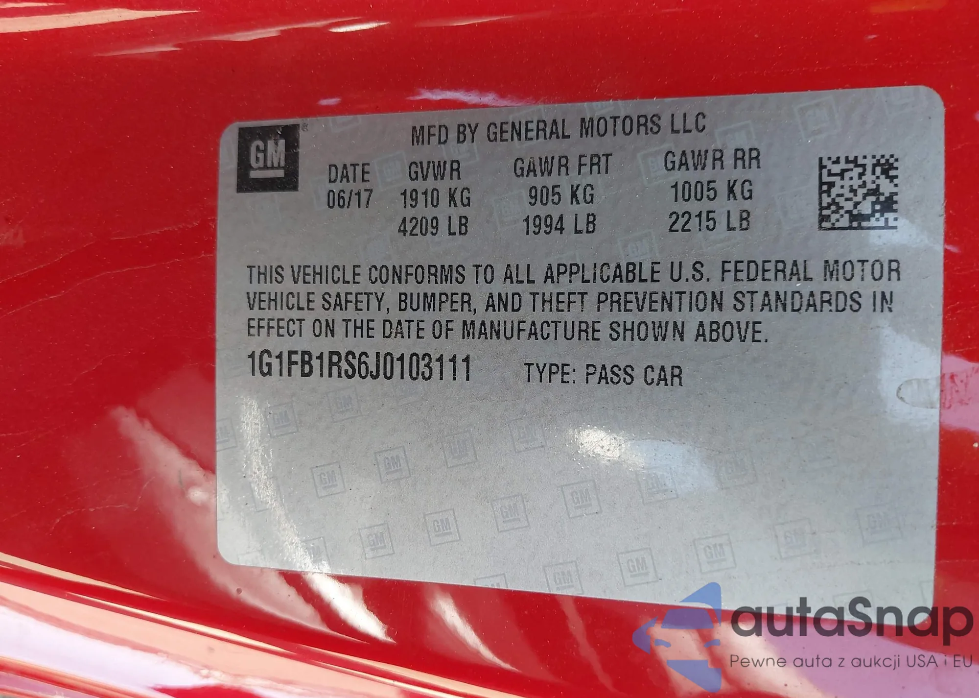 • VIN: 1G1FB1RS6J0103111