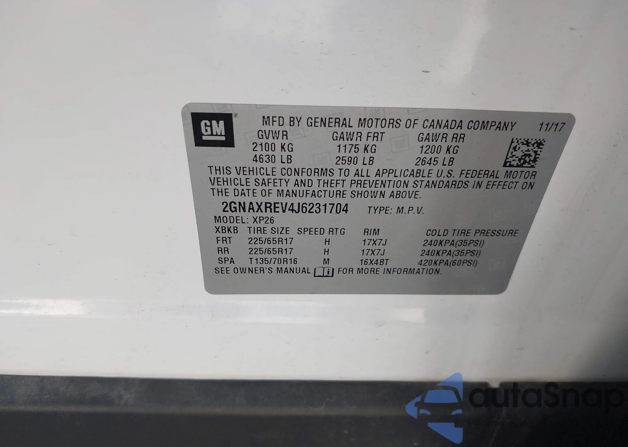 VIN: 2GNAXREV4J6231704