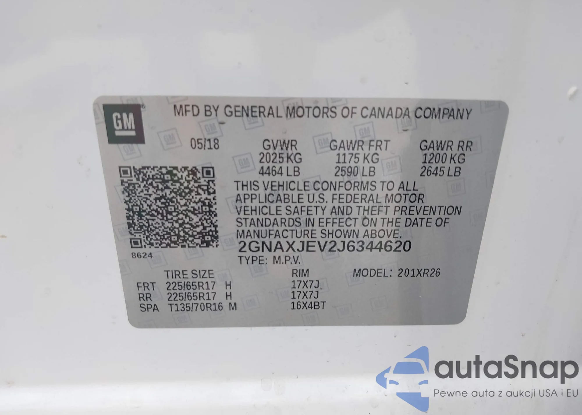 • VIN: 2GNAXJEV2J6344620