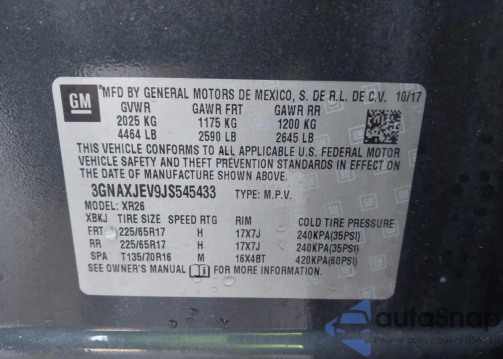 Автомобиль Chevrolet Equinox 2018 (VIN 3GNAXJEV9JS545433) ранее не участвовал в торгах. Документы чистые, пробег соответствует или ниже среднего по рынку. Продаётся страховой компанией — рекомендуем покупку. Доставка в порт займет около 6–8 недель.