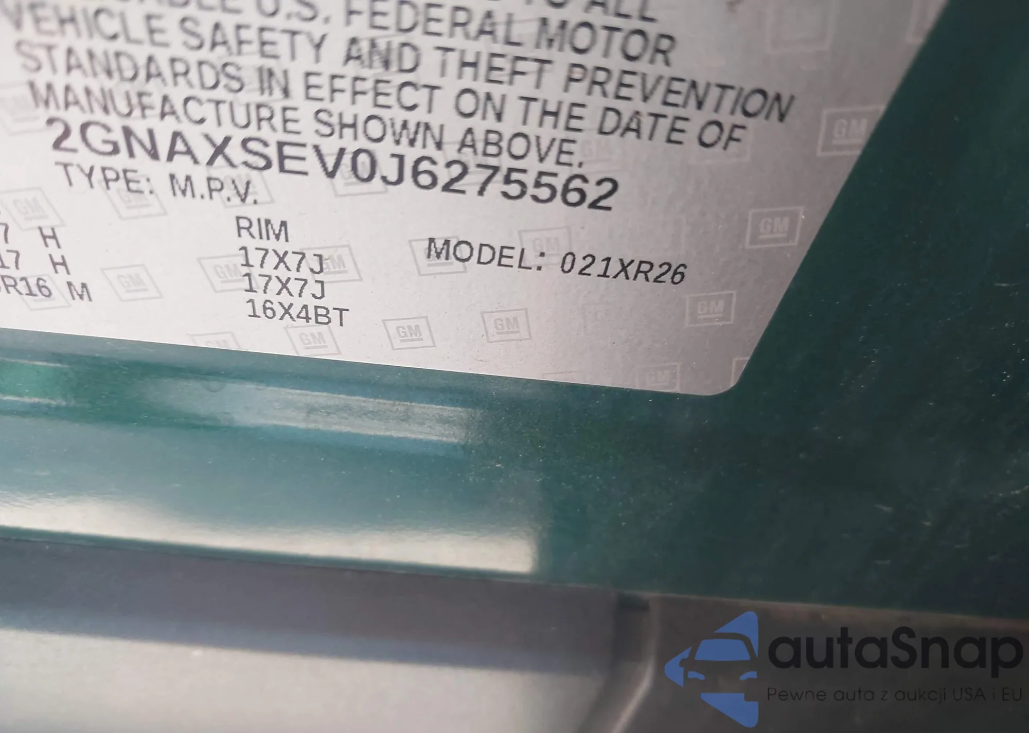 VIN: 2GNAXSEV0J6275562