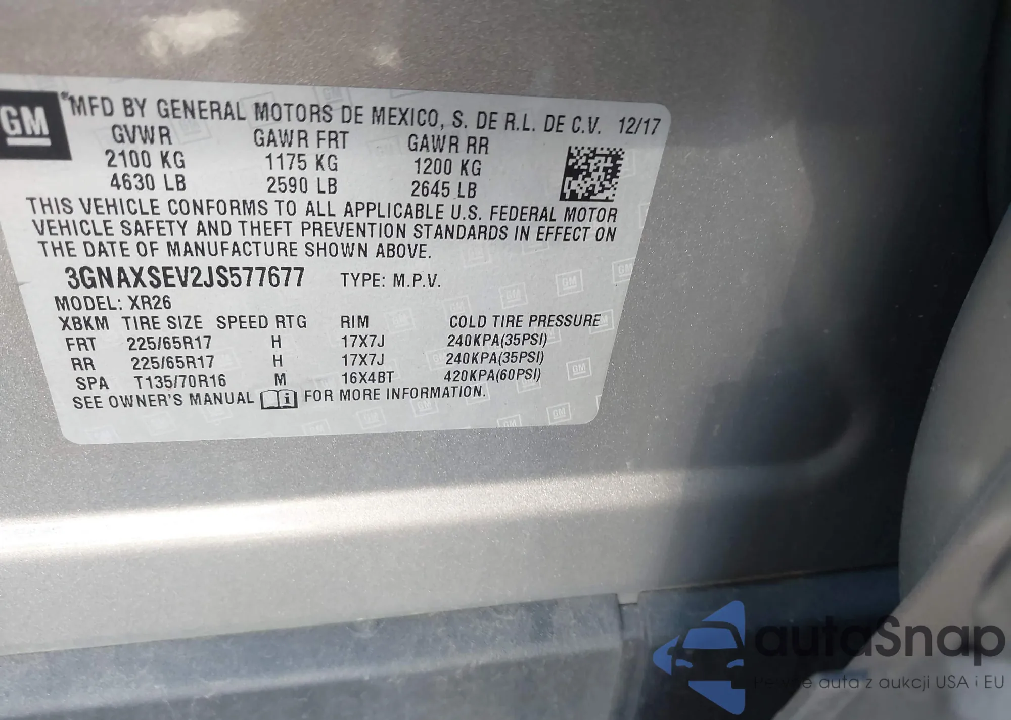 VIN: 3GNAXSEV2JS577677