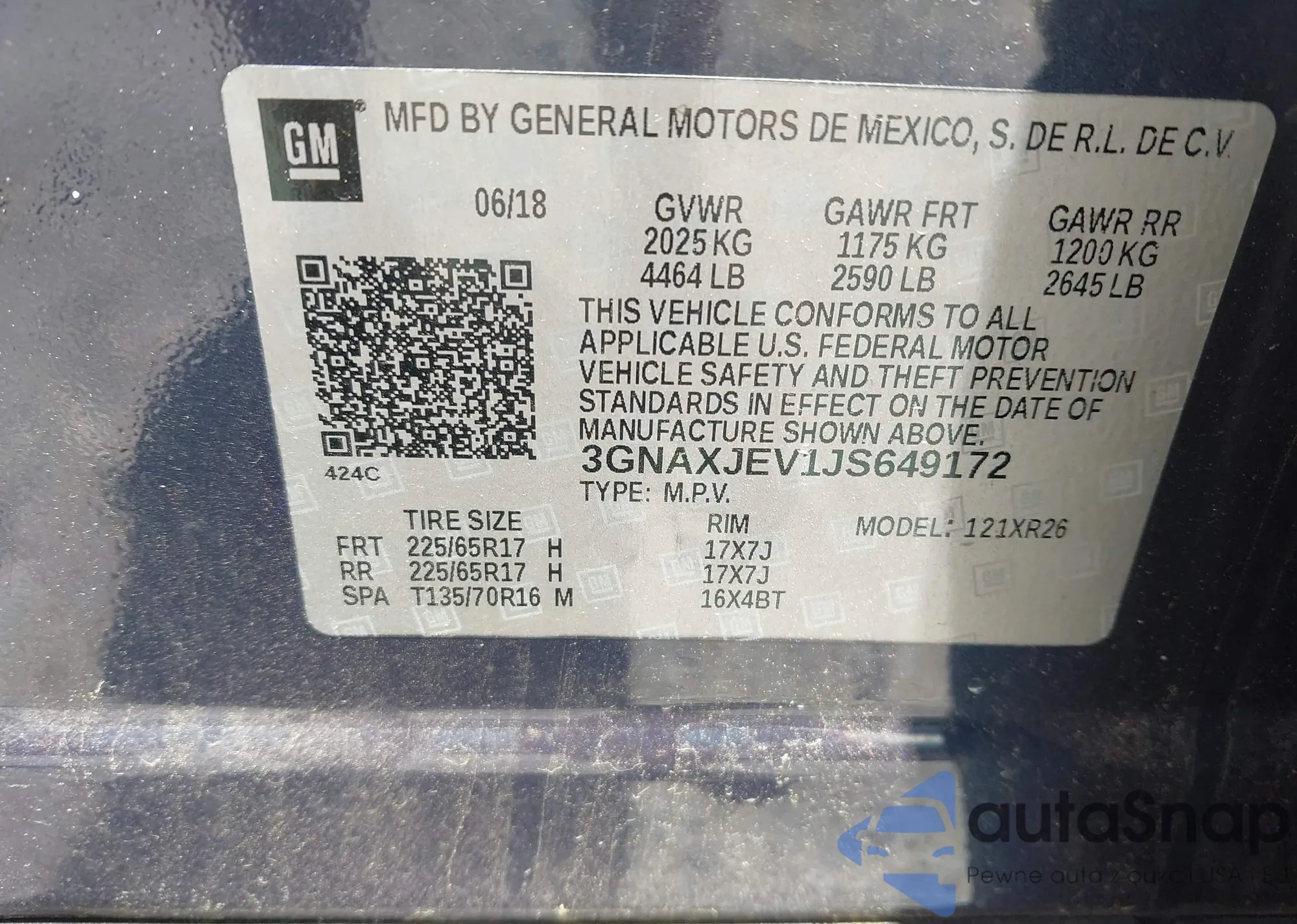 VIN: 3GNAXJEV1JS649172