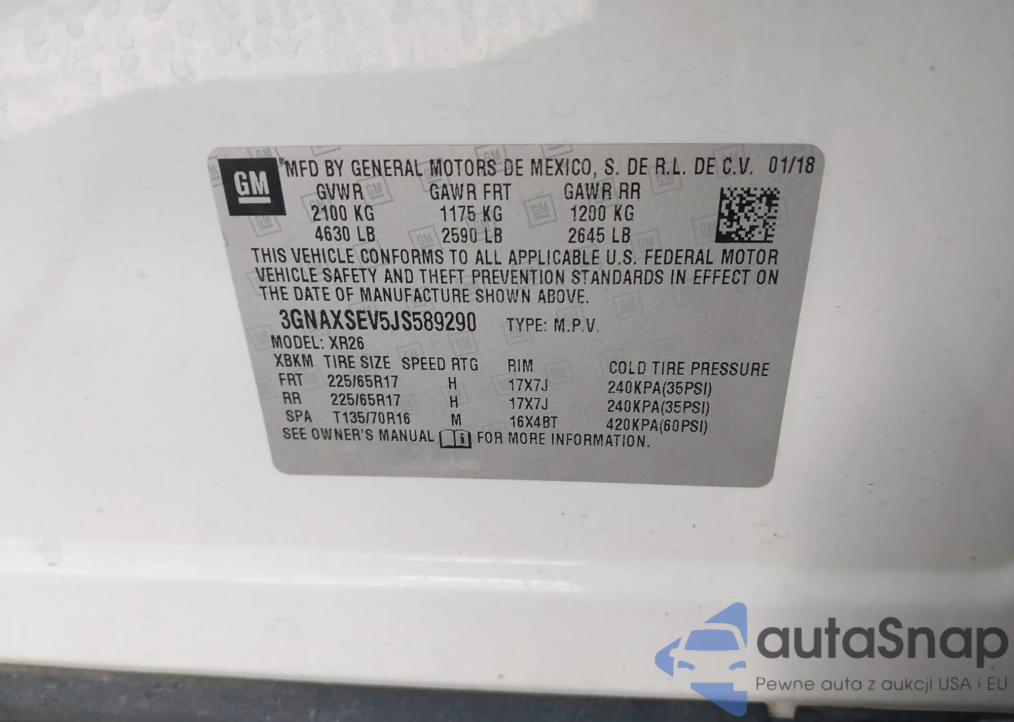 VIN: 3GNAXSEV5JS589290