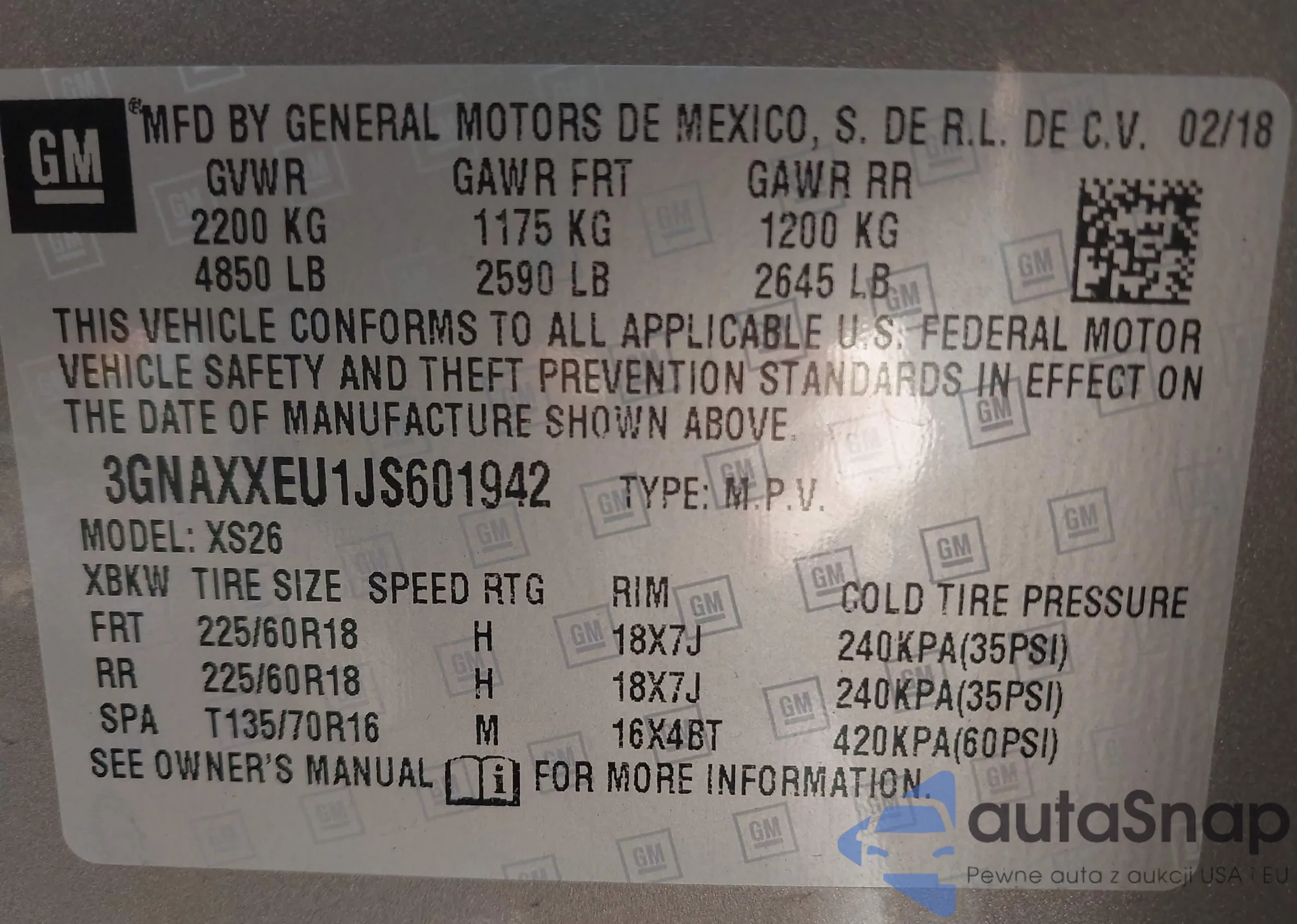 Автомобиль Chevrolet Equinox 2018 (VIN 3GNAXXEU1JS601942) ранее не участвовал в торгах. Документы чистые, пробег соответствует или ниже среднего по рынку. Продаётся страховой компанией — рекомендуем покупку. Доставка в порт займет около 6–8 недель.