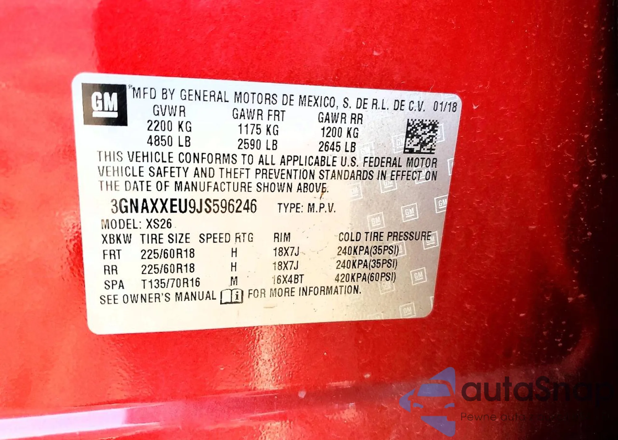 Автомобиль Chevrolet Equinox 2018 (VIN 3GNAXXEU9JS596246) ранее не участвовал в торгах. Документы чистые, пробег соответствует или ниже среднего по рынку. Продаётся страховой компанией — рекомендуем покупку. Доставка в порт займет около 6–8 недель.