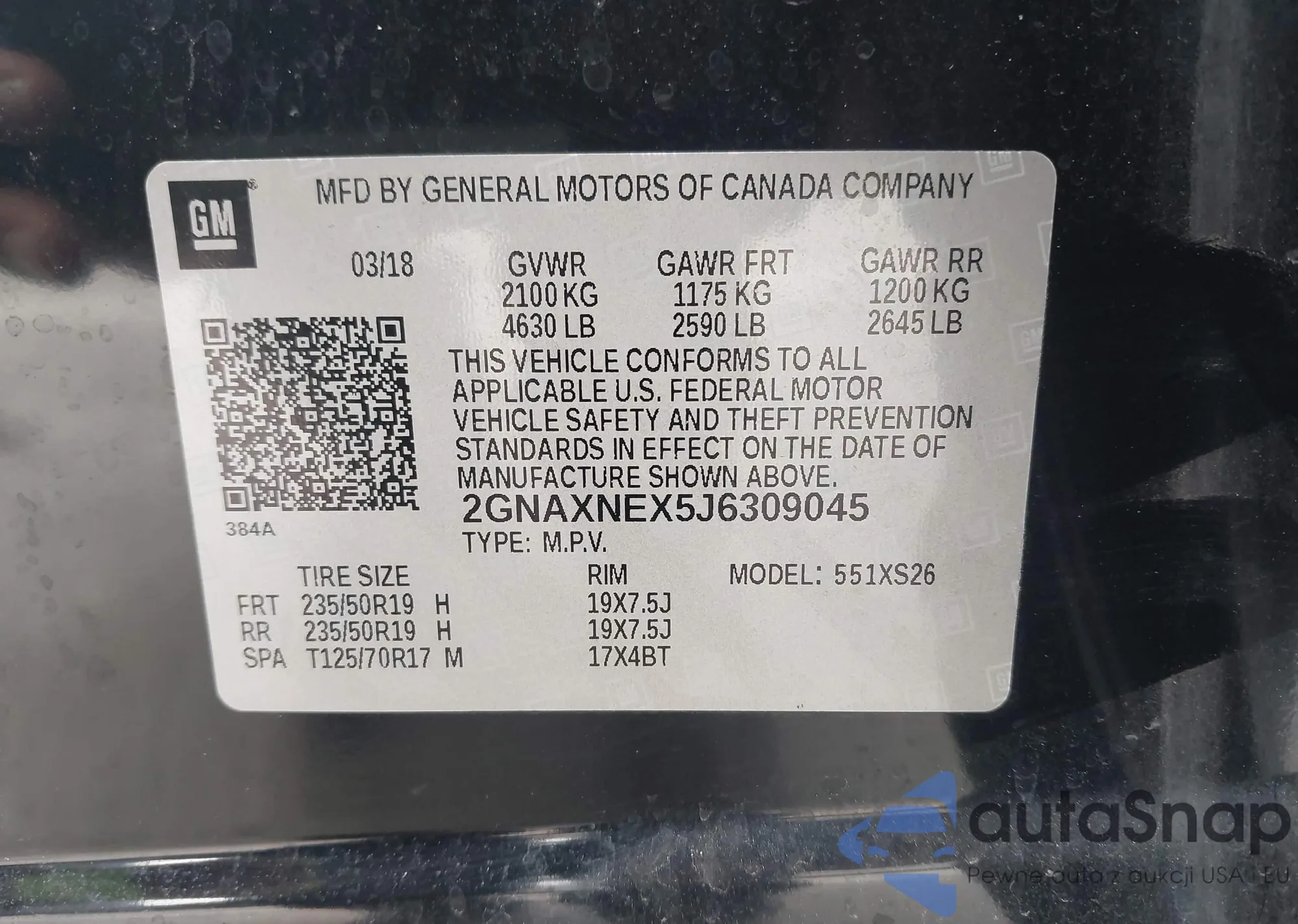 Автомобиль Chevrolet Equinox 2018 (VIN 2GNAXNEX5J6309045) ранее не участвовал в торгах. Документы чистые, пробег соответствует или ниже среднего по рынку. Продаётся страховой компанией — рекомендуем покупку. Доставка в порт займет около 6–8 недель.