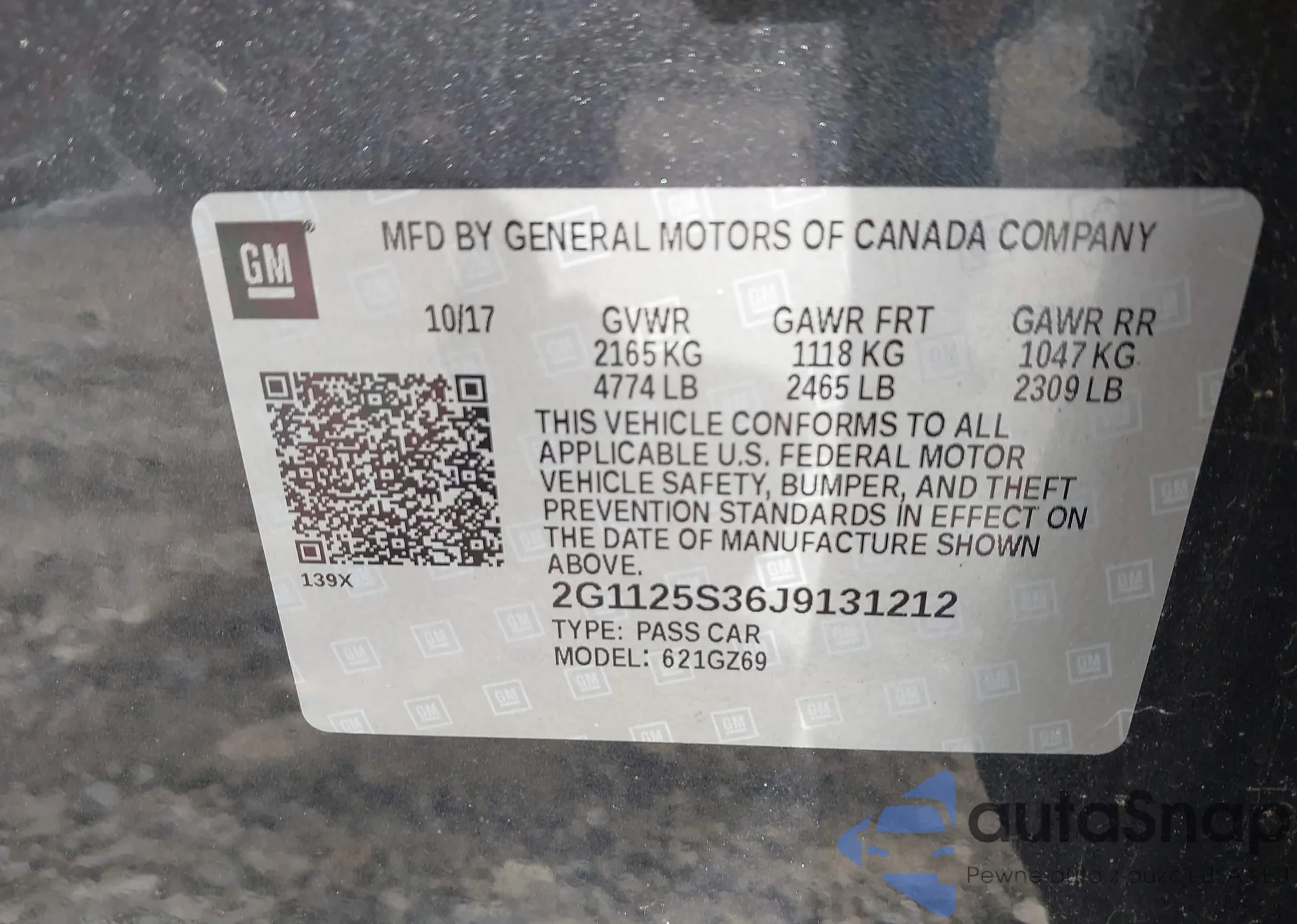 VIN: 2G1125S36J9131212