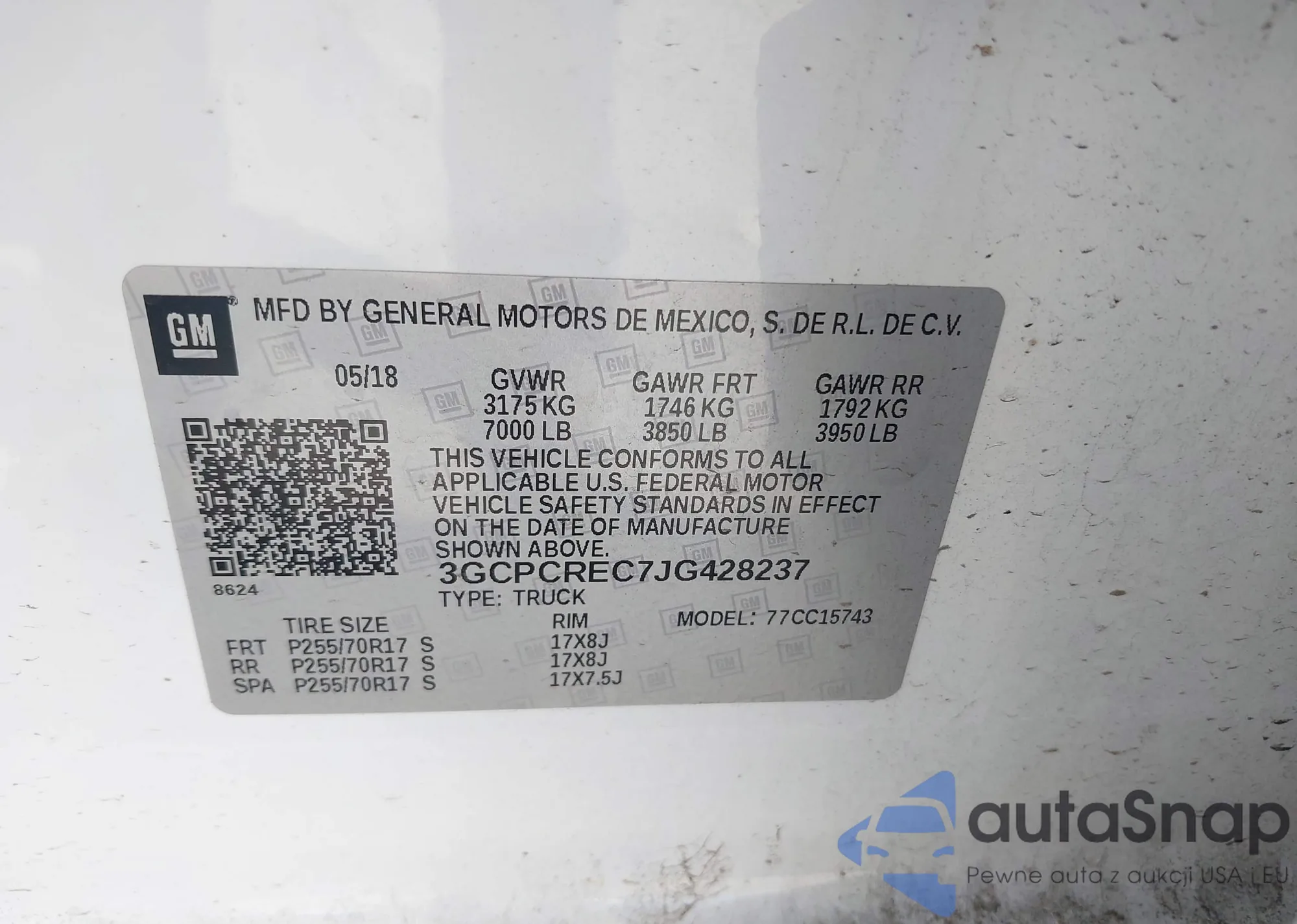 VIN: 3GCPCREC7JG428237