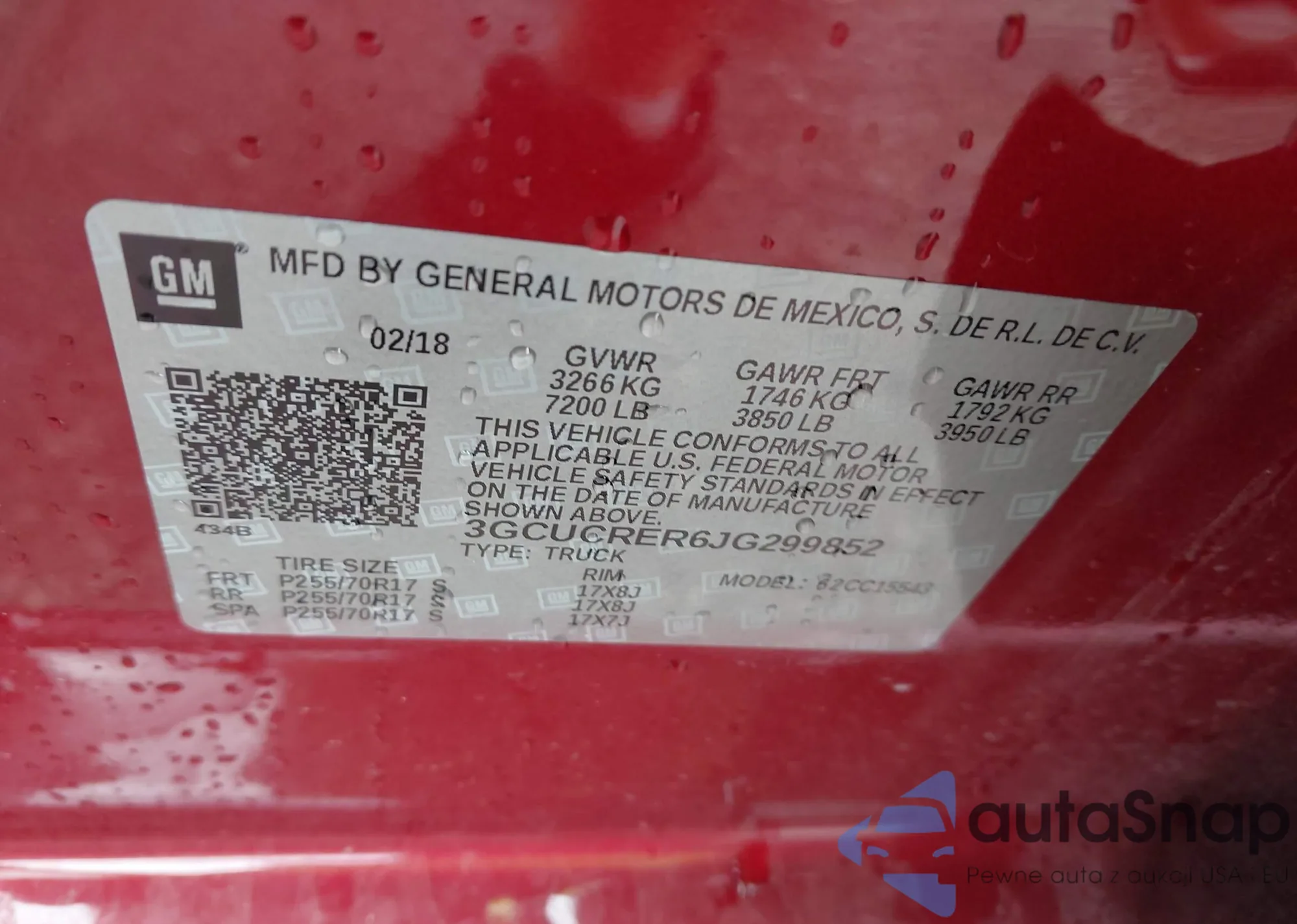 VIN: 3GCUCRER6JG299852