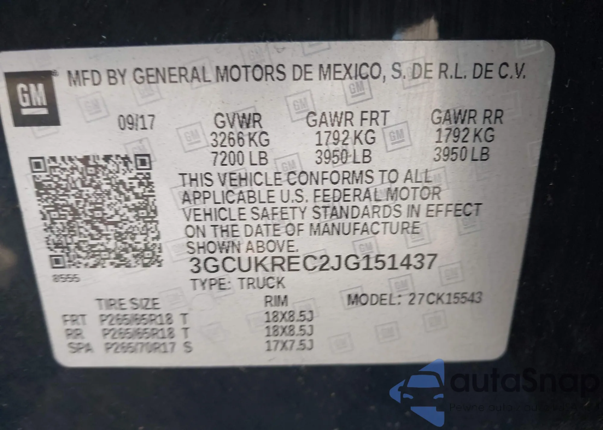 • VIN: 3GCUKREC2JG151437