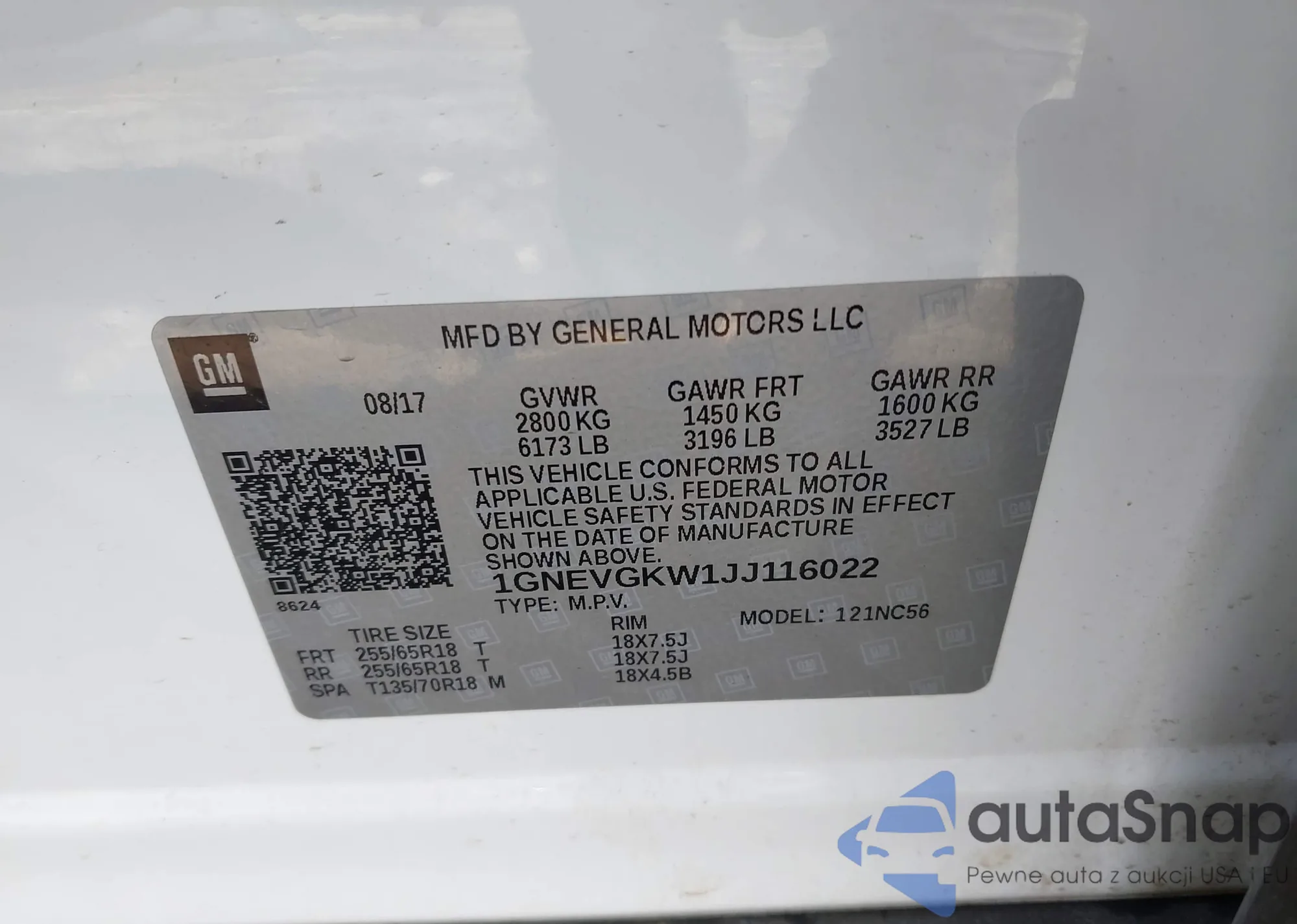 VIN: 1GNEVGKW1JJ116022